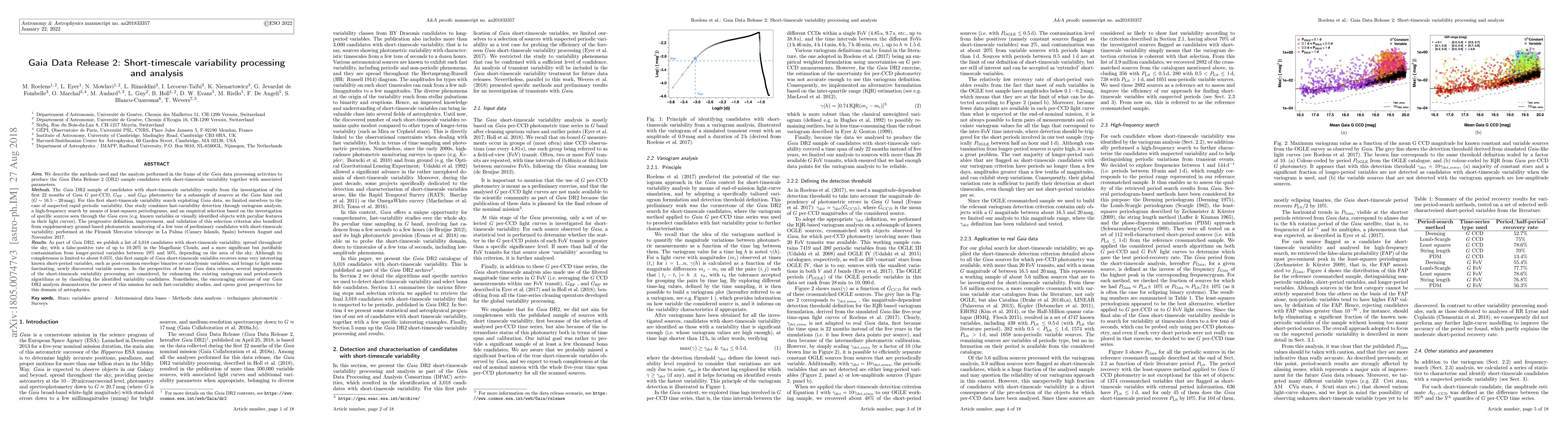 The Gaia DR2 identifies 3,018 short-timescale variable candidates through variogram analysis and least-squares periodograms, with a false-positive rate of up to 20% in the Magellanic Clouds. The study highlights the mission's potential for fast-variability studies and opens new avenues for future improvements.