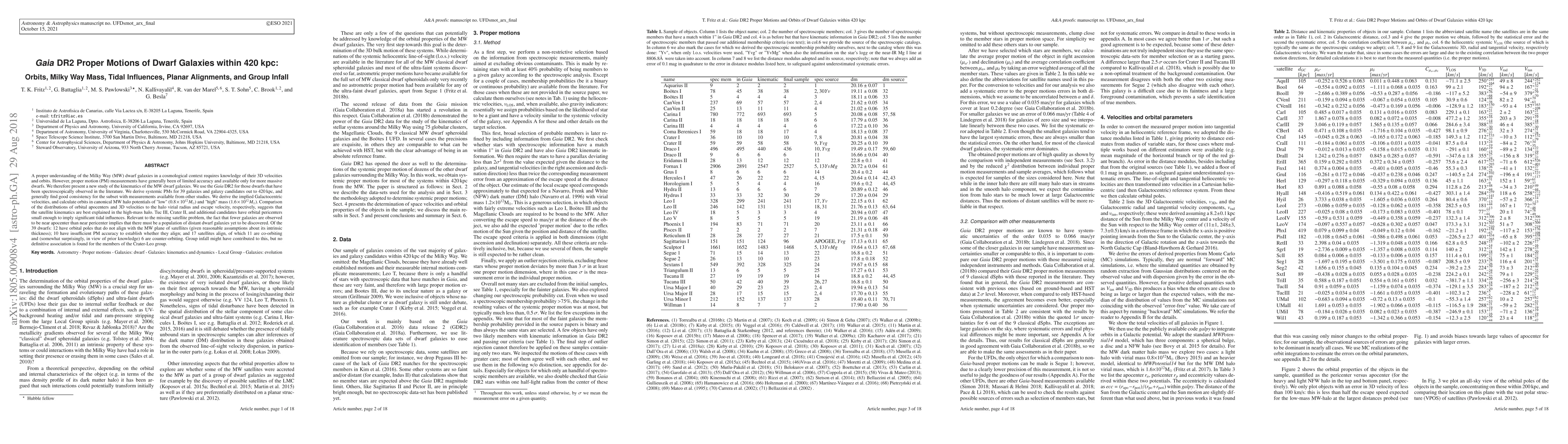 This study utilizes Gaia DR2 proper motions to analyze the kinematics and orbits of 39 Milky Way dwarf galaxies, finding that their satellite kinematics are best explained by a high-mass halo. The research also reveals significant tidal influences on some satellites and suggests the existence of undiscovered distant dwarf galaxies.