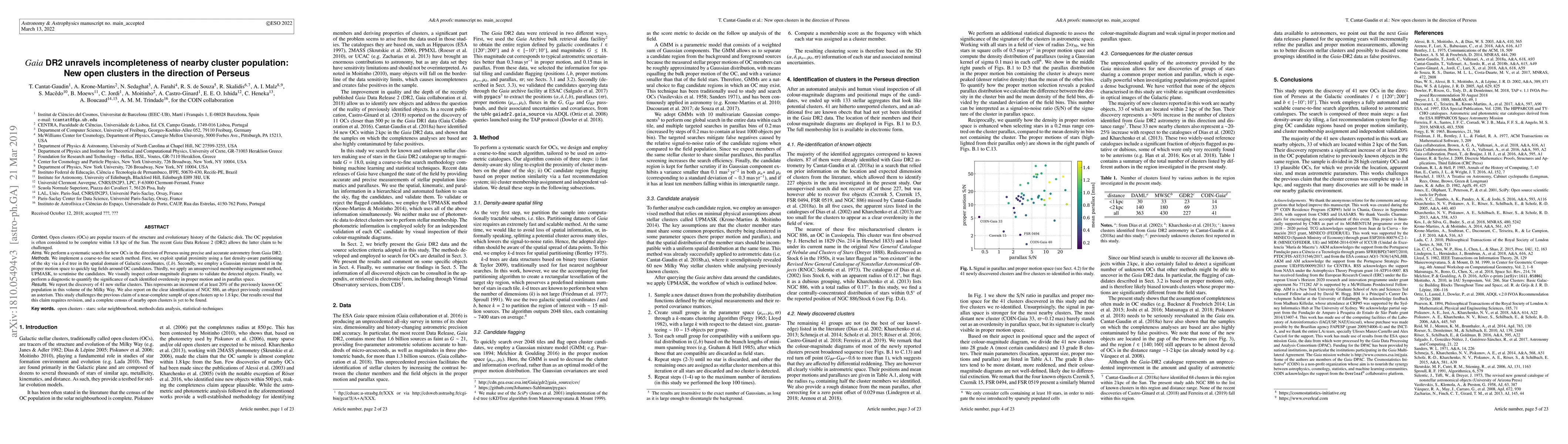 Gaia DR2 reveals the incompleteness of nearby open cluster populations, identifying 41 new clusters in the Perseus direction, which increases the known cluster count by at least 20% within 1.8 kpc. This discovery challenges the previous notion of a nearly complete cluster sample and suggests a need for further census efforts.