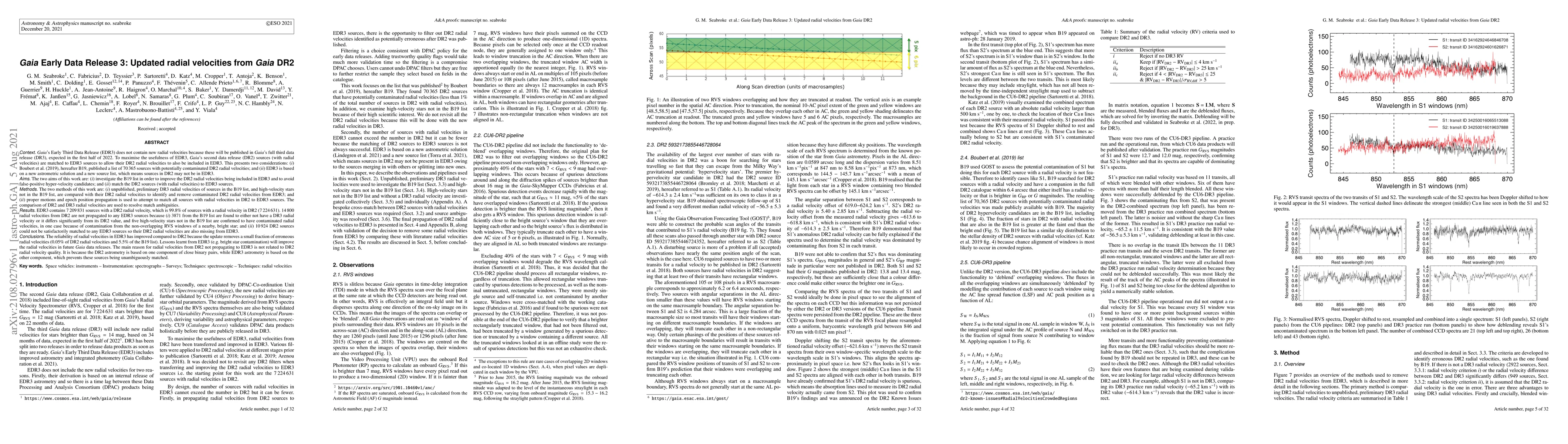 Gaia's Early Third Data Release (EDR3) matches DR2 sources to EDR3 to include DR2 radial velocities, excluding 14,800 due to contamination or unmatched sources. The reliability of EDR3 radial velocities has improved by removing erroneous DR2 values, enhancing future data releases.