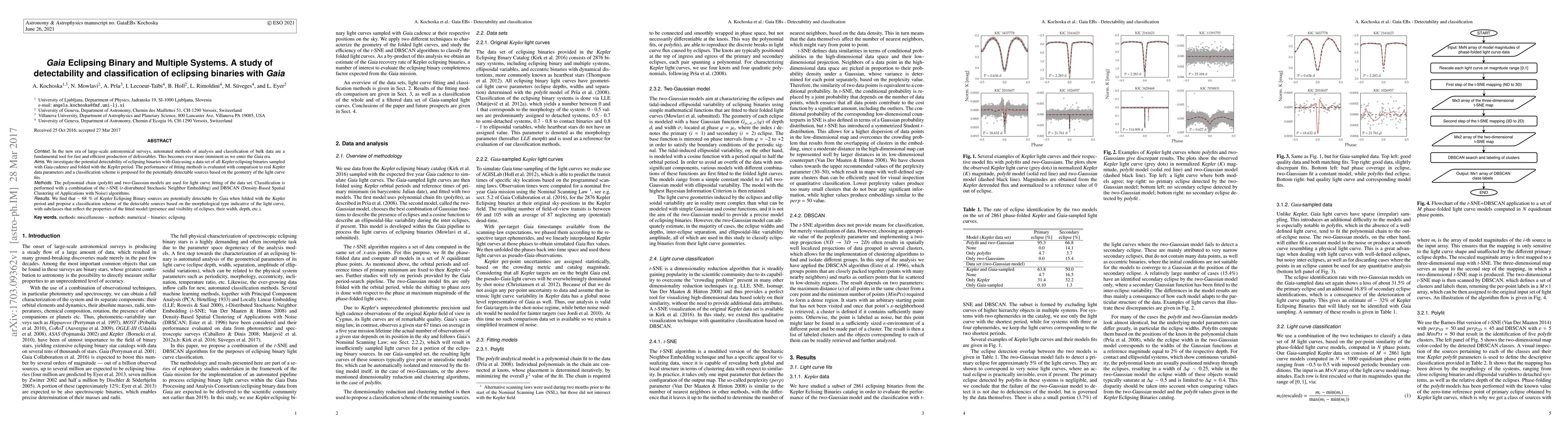 This study explores the detectability of eclipsing binaries using Gaia data, finding that around 68% of Kepler eclipsing binaries are potentially detectable. It employs fitting methods like polyfit and two-Gaussian models and uses t-SNE and DBSCAN for classification, proposing a scheme based on light curve morphology and fitted model properties.