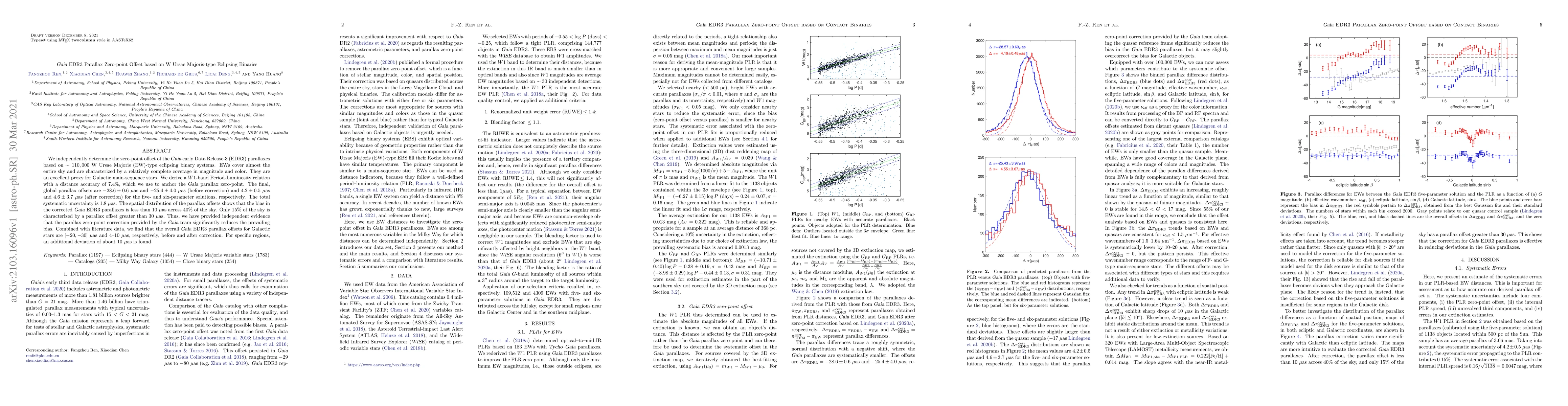 We independently determine the zero-point offset of the Gaia early Data Release-3 (EDR3) parallaxes based on $\sim 110,000$ W Ursae Majoris (EW)-type eclipsing binary systems. EWs cover almost the entire sky and are characterized by a relatively complete coverage in magnitude and color. They are an excellent proxy for Galactic main-sequence stars. We derive a $W1$-band Period-Luminosity relation with a distance accuracy of $7.4\%$, which we use to anchor the Gaia parallax zero-point. The final, global parallax offsets are $-28.6\pm0.6$ $\mu$as and $-25.4\pm4.0$ $\mu$as (before correction) and $4.2\pm0.5$ $\mu$as and $4.6\pm3.7$ $\mu$as (after correction) for the five- and six-parameter solutions, respectively. The total systematic uncertainty is $1.8$ $\mu$as. The spatial distribution of the parallax offsets shows that the bias in the corrected Gaia EDR3 parallaxes is less than 10 $\mu$as across $40\%$ of the sky. Only $15\%$ of the sky is characterized by a parallax offset greater than 30 $\mu$as. Thus, we have provided independent evidence that the parallax zero-point correction provided by the Gaia team significantly reduces the prevailing bias. Combined with literature data, we find that the overall Gaia EDR3 parallax offsets for Galactic stars are $[-20, -30]$ $\mu$as and 4-10 $\mu$as, respectively, before and after correction. For specific regions, an additional deviation of about 10 $\mu$as is found.