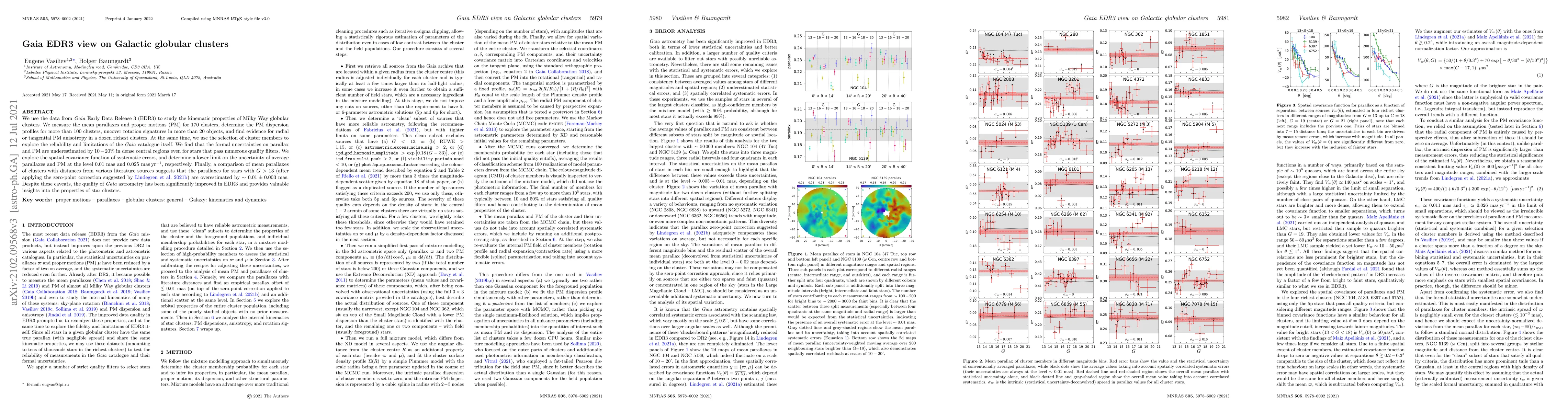 We use the data from Gaia Early Data Release 3 (EDR3) to study the kinematic properties of Milky Way globular clusters. We measure the mean parallaxes and proper motions (PM) for 170 clusters, determine the PM dispersion profiles for more than 100 clusters, uncover rotation signatures in more than 20 objects, and find evidence for radial or tangential PM anisotropy in a dozen richest clusters. At the same time, we use the selection of cluster members to explore the reliability and limitations of the Gaia catalogue itself. We find that the formal uncertainties on parallax and PM are underestimated by 10-20% in dense central regions even for stars that pass numerous quality filters. We explore the the spatial covariance function of systematic errors, and determine a lower limit on the uncertainty of average parallaxes and PM at the level 0.01 mas and 0.025 mas/yr, respectively. Finally, a comparison of mean parallaxes of clusters with distances from various literature sources suggests that the parallaxes (after applying the zero-point correction suggested by Lindegren et al. 2021) are overestimated by 0.01+-0.003 mas. Despite these caveats, the quality of Gaia astrometry has been significantly improved in EDR3 and provides valuable insights into the properties of star clusters.