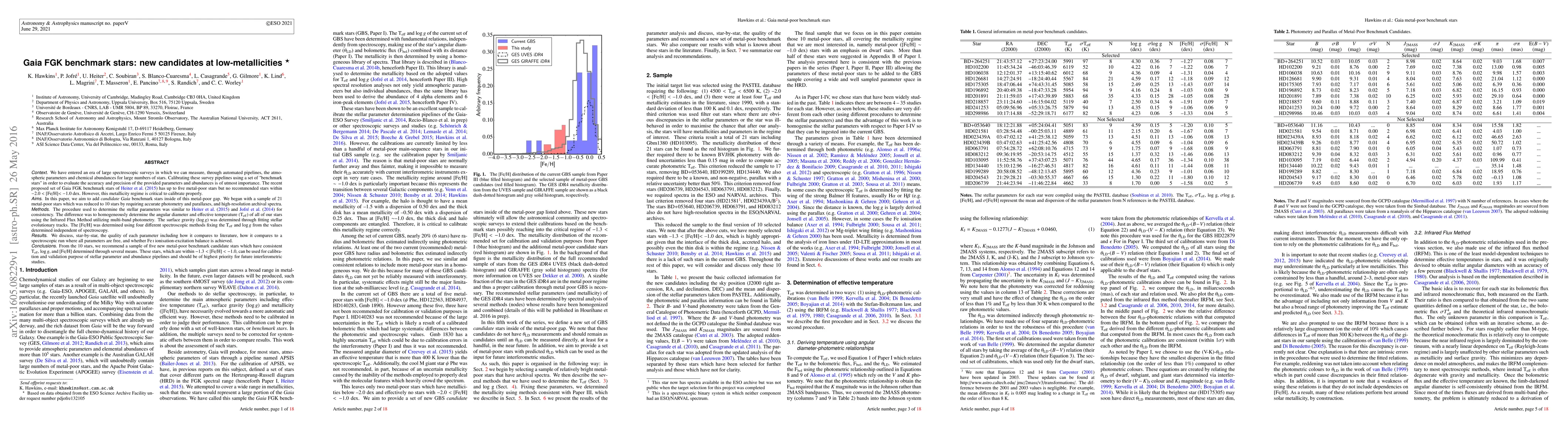We have entered an era of large spectroscopic surveys in which we can measure, through automated pipelines, the atmospheric parameters and chemical abundances for large numbers of stars. Calibrating these survey pipelines using a set of "benchmark stars" in order to evaluate the accuracy and precision of the provided parameters and abundances is of utmost importance. The recent proposed set of Gaia FGK benchmark stars of Heiter et al. (2015) has no recommended stars within the critical metallicity range of $-2.0 <$ [Fe/H] $< -1.0$ dex. In this paper, we aim to add candidate Gaia benchmark stars inside of this metal-poor gap. We began with a sample of 21 metal-poor stars which was reduced to 10 stars by requiring accurate photometry and parallaxes, and high-resolution archival spectra. The procedure used to determine the stellar parameters was similar to Heiter et al. (2015) and Jofre et al. (2014) for consistency. The effective temperature (T$_{\mathrm{eff}}$) of all candidate stars was determined using the Infrared Flux Method utilizing multi-band photometry. The surface gravity (log g) was determined through fitting stellar evolutionary tracks. The [Fe/H] was determined using four different spectroscopic methods fixing the T$_{\mathrm{eff}}$ and log g from the values determined independent of spectroscopy. We discuss, star-by-star, the quality of each parameter including how it compares to literature, how it compares to a spectroscopic run where all parameters are free, and whether Fe I ionisation-excitation balance is achieved. From the 10 stars, we recommend a sample of five new metal-poor benchmark candidate stars which have consistent T$_{\mathrm{eff}}$ , log g, and [Fe/H] determined through several means. These stars can be used for calibration and validation purpose of stellar parameter and abundance pipelines and should be of highest priority for future interferometric studies.