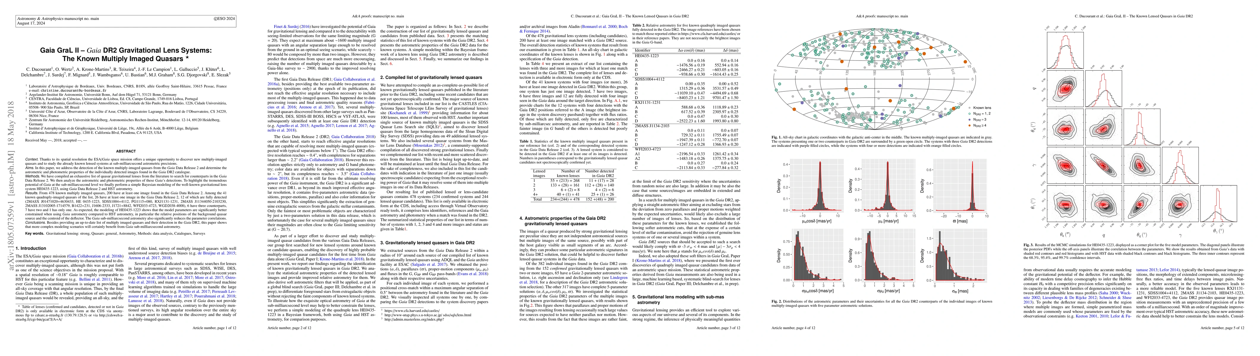 This paper investigates the detection of known multiply-imaged quasars in the Gaia Data Release 2, finding that 200 out of 478 have at least one image detected. It highlights the improved astrometric precision of Gaia, demonstrated through a Bayesian modeling of HE0435-1223, showing better constraints and reduced parameter correlations compared to HST astrometry.