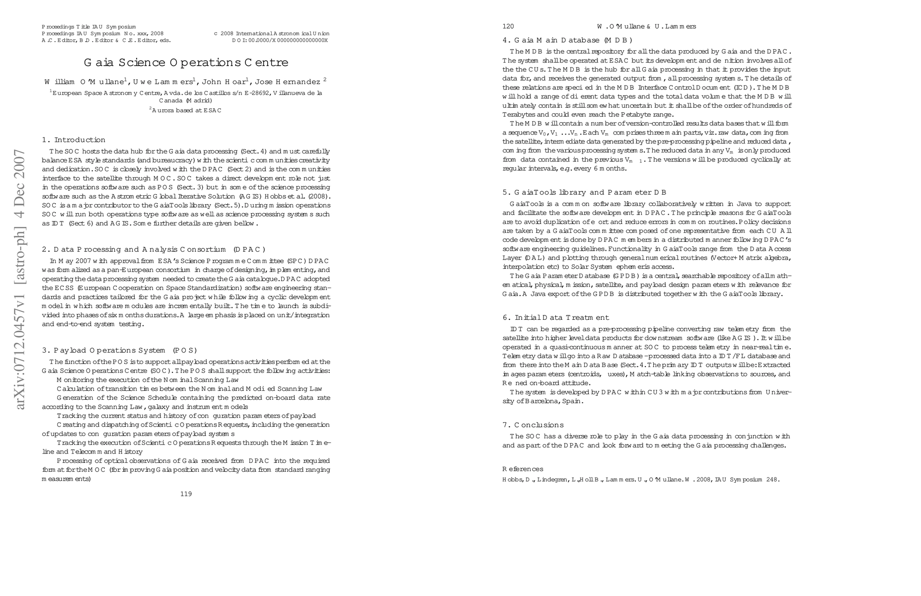 Gaia Science Operations Centre (GSOC) manages the data collection and processing for the Gaia space observatory, ensuring the seamless operation of its scientific instruments and the delivery of high-quality astronomical data for research. GSOC coordinates with international scientific teams to maximize the mission's scientific output.