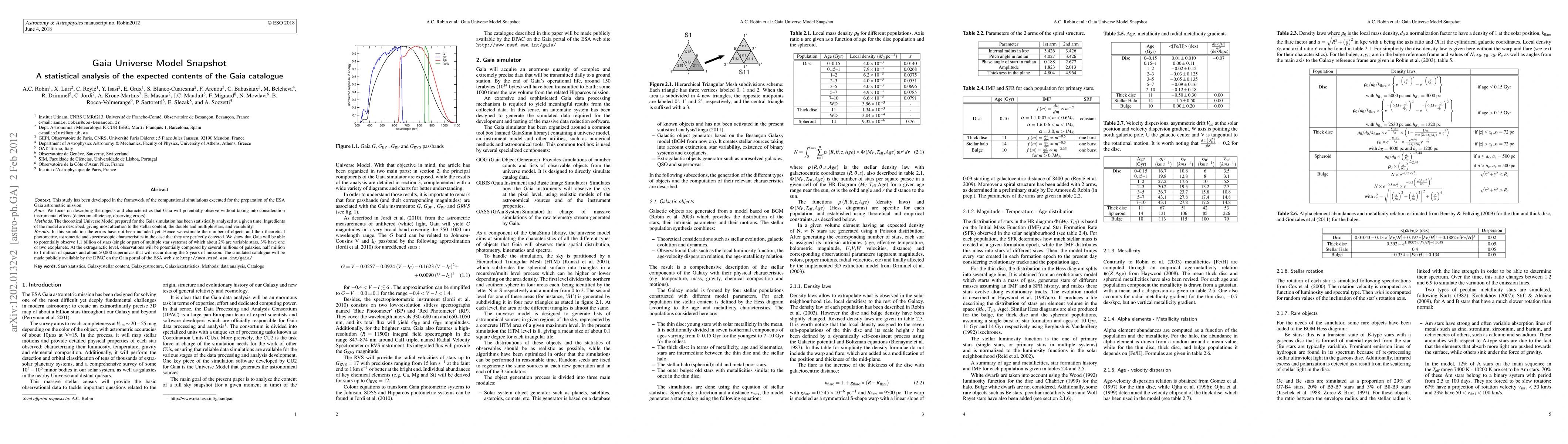 Context. This study has been developed in the framework of the computational simulations executed for the preparation of the ESA Gaia astrometric mission. Aims. We focus on describing the objects and characteristics that Gaia will potentially observe without taking into consideration instrumental effects (detection efficiency, observing errors). Methods. The theoretical Universe Model prepared for the Gaia simulation has been statistically analyzed at a given time. Ingredients of the model are described, giving most attention to the stellar content, the double and multiple stars, and variability. Results. In this simulation the errors have not been included yet. Hence we estimate the number of objects and their theoretical photometric, astrometric and spectroscopic characteristics in the case that they are perfectly detected. We show that Gaia will be able to potentially observe 1.1 billion of stars (single or part of multiple star systems) of which about 2% are variable stars, 3% have one or two exoplanets. At the extragalactic level, observations will be potentially composed by several millions of galaxies, half million to 1 million of quasars and about 50,000 supernovas that will occur during the 5 years of mission. The simulated catalogue will be made publicly available by the DPAC on the Gaia portal of the ESA web site http://www.rssd.esa.int/gaia/.