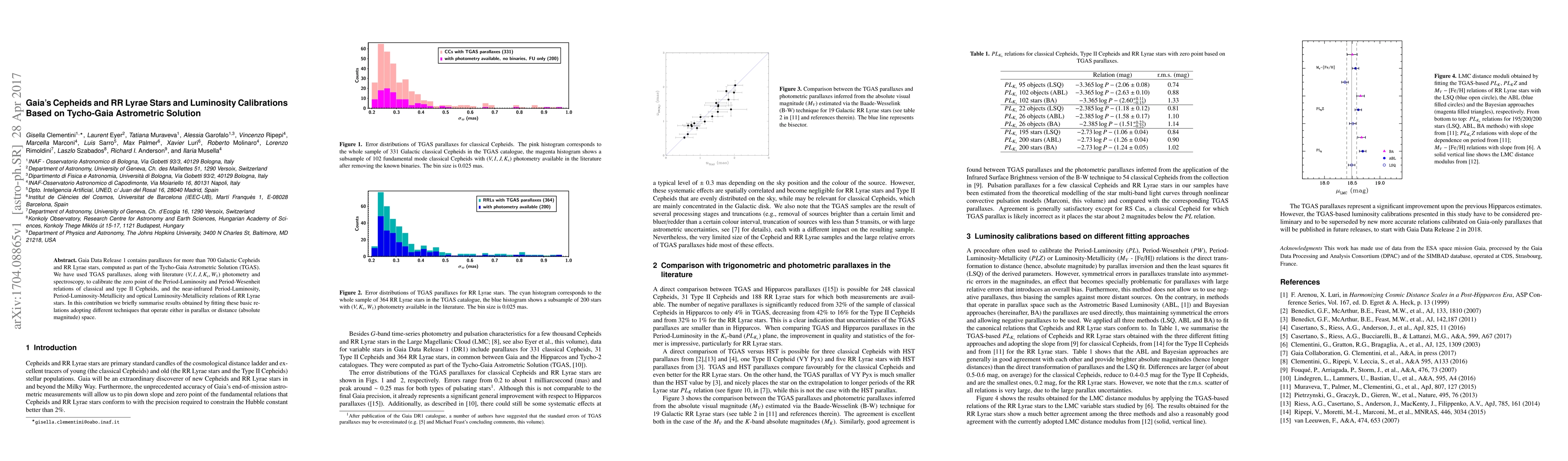 This paper uses Gaia Data Release 1 parallaxes for over 700 Cepheids and RR Lyrae stars to calibrate luminosity relations, including the Period-Luminosity relations for Cepheids and Period-Luminosity-Metallicity relations for RR Lyrae stars, employing various fitting techniques in parallax and distance space. The results enhance the accuracy of these fundamental stellar luminosity calibrations.