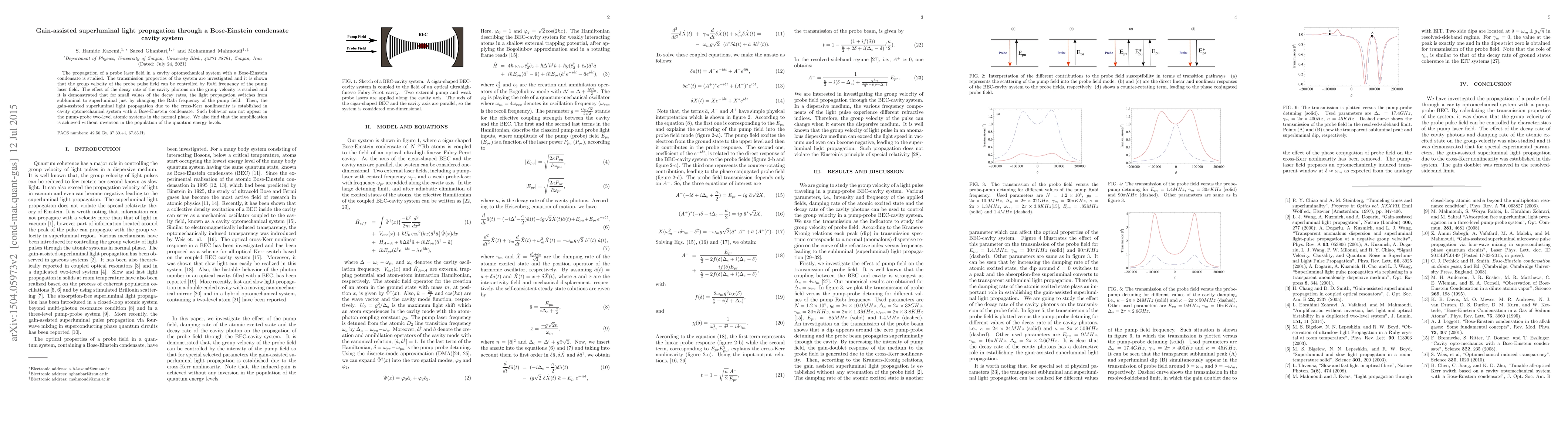This paper investigates the propagation of a probe laser field in a Bose-Einstein condensate cavity optomechanical system, demonstrating that the group velocity can be controlled by the Rabi frequency of the pump laser. It shows gain-assisted superluminal light propagation due to cross-Kerr nonlinearity, achieved without population inversion.
