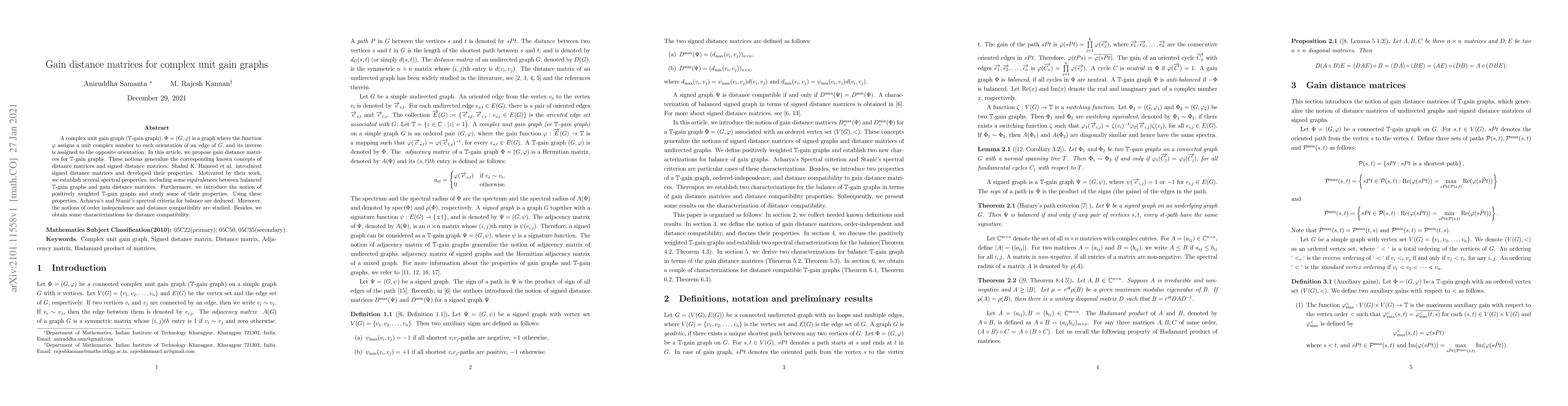 A complex unit gain graph ($ \mathbb{T} $-gain graph), $ \Phi=(G, \varphi) $ is a graph where the function $ \varphi $ assigns a unit complex number to each orientation of an edge of $ G $, and its inverse is assigned to the opposite orientation. %A complex unit gain graph($ \mathbb{T} $-gain graph) is a simple graph where each orientation of an edge is given a complex unit, and its inverse is assigned to the opposite orientation of the edge. In this article, we propose gain distance matrices for $ \mathbb{T} $-gain graphs. These notions generalize the corresponding known concepts of distance matrices and signed distance matrices. Shahul K. Hameed et al. introduced signed distance matrices and developed their properties. Motivated by their work, we establish several spectral properties, including some equivalences between balanced $ \mathbb{T} $-gain graphs and gain distance matrices. Furthermore, we introduce the notion of positively weighted $ \mathbb{T} $-gain graphs and study some of their properties. Using these properties, Acharya's and Stani\'c's spectral criteria for balance are deduced. Moreover, the notions of order independence and distance compatibility are studied. Besides, we obtain some characterizations for distance compatibility.
