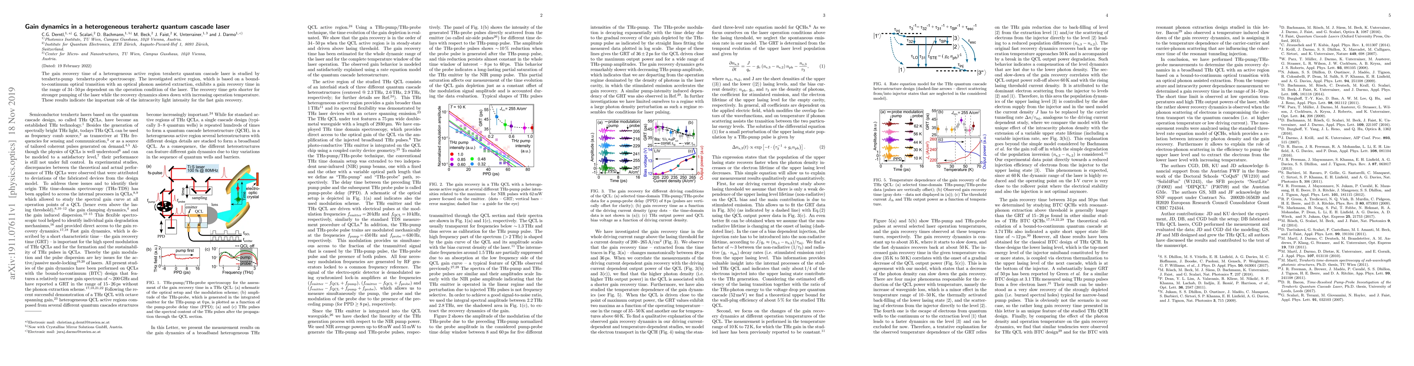 The study reveals that the gain recovery time in a heterogeneous terahertz quantum cascade laser ranges from 34 to 50 ps, dependent on operational conditions, with shorter times for stronger pumping and slower recovery at higher temperatures, highlighting the significance of intracavity light intensity for rapid gain recovery.