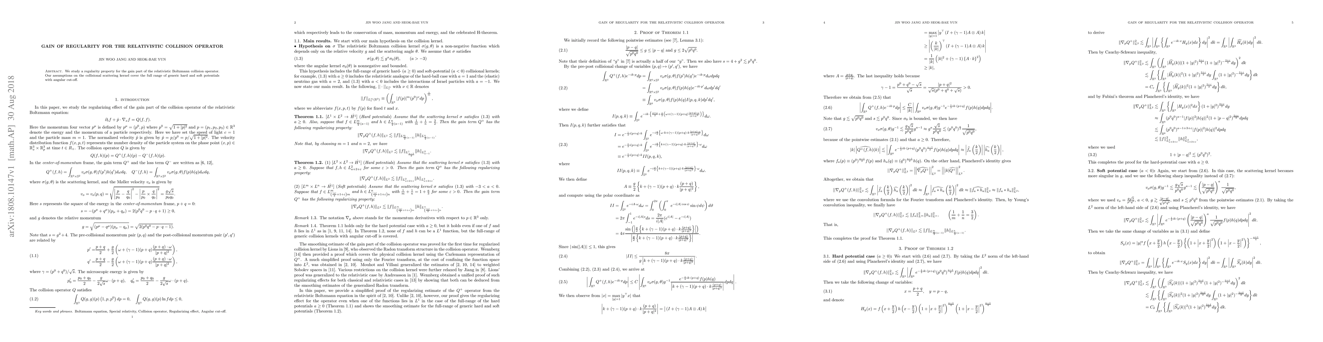 We study a regularity property for the gain part of the relativistic Boltzmann collision operator. Our assumptions on the collisional scattering kernel cover the full range of generic hard and soft potentials with angular cut-off.