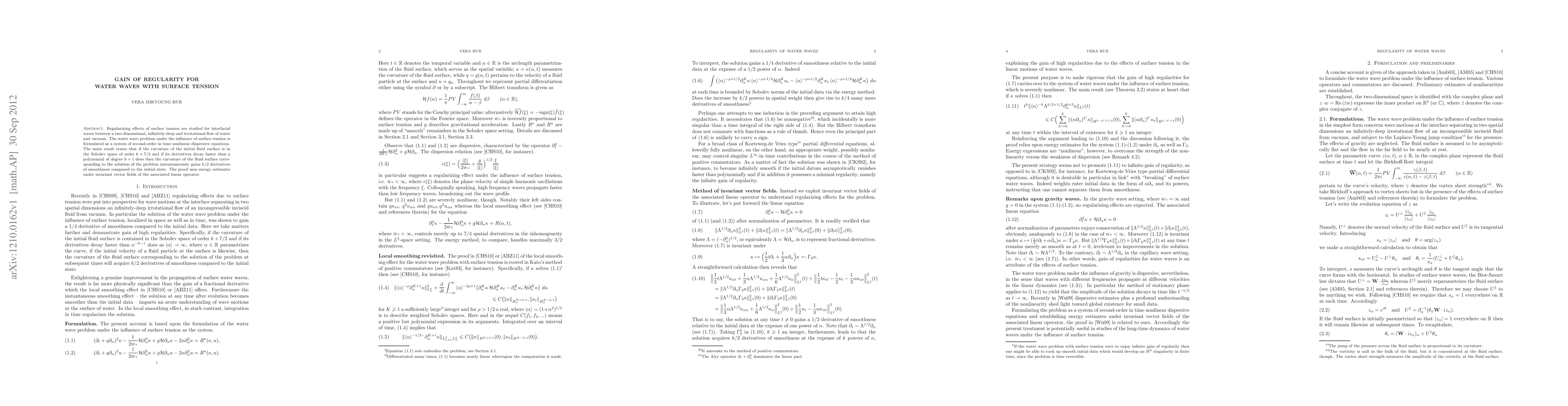 Research finds that surface tension in water waves can increase their smoothness and regularity over time, allowing them to maintain more derivatives of smoothness than initially present.