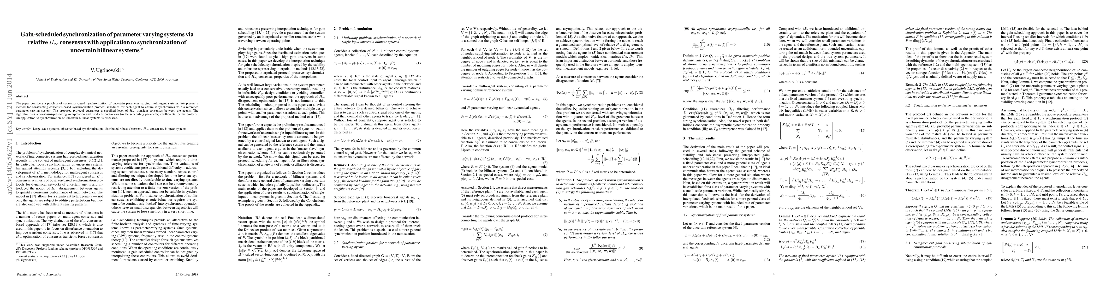 This research introduces a method for synchronizing uncertain parameter-varying multi-agent systems using consensus-based synchronization protocols. It ensures a specified H_∞ transient consensus level and is demonstrated with an application to uncertain bilinear systems.