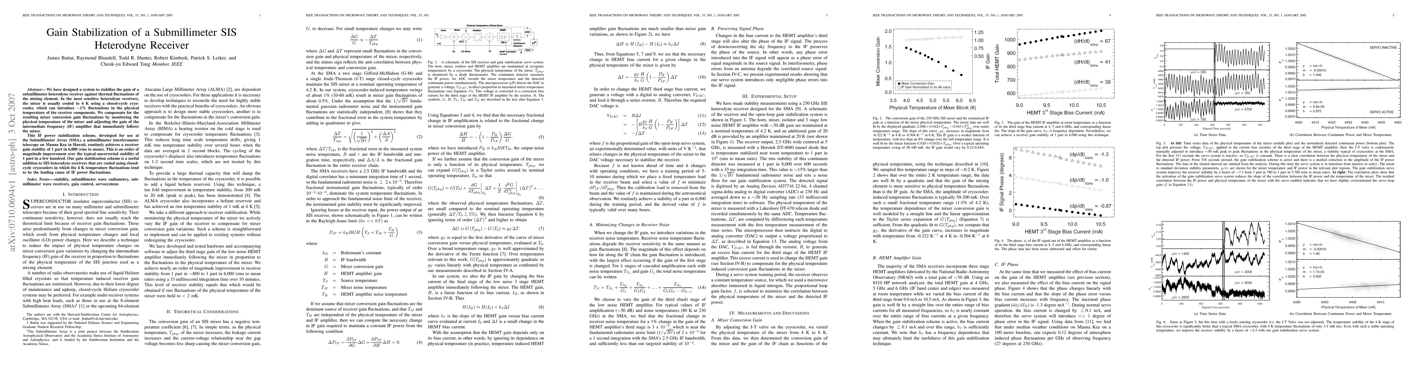 This work introduces a novel approach to stabilizing the gain of a heterodyne receiver, which can be applied to other types of receivers or applications.