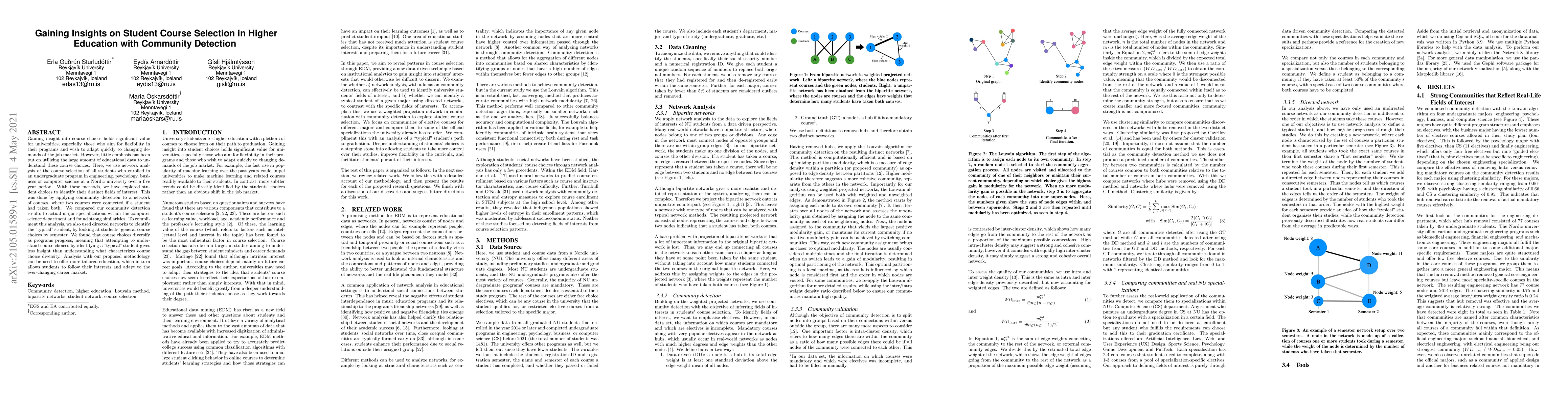 This study employs network analysis and community detection to explore course selection patterns among students in engineering, psychology, business, and computer science at a Nordic university. The findings reveal distinct fields of interest and show that understanding course choice diversity provides more insight than identifying a "typical" student, suggesting tailored education can better align with student interests and market demands.