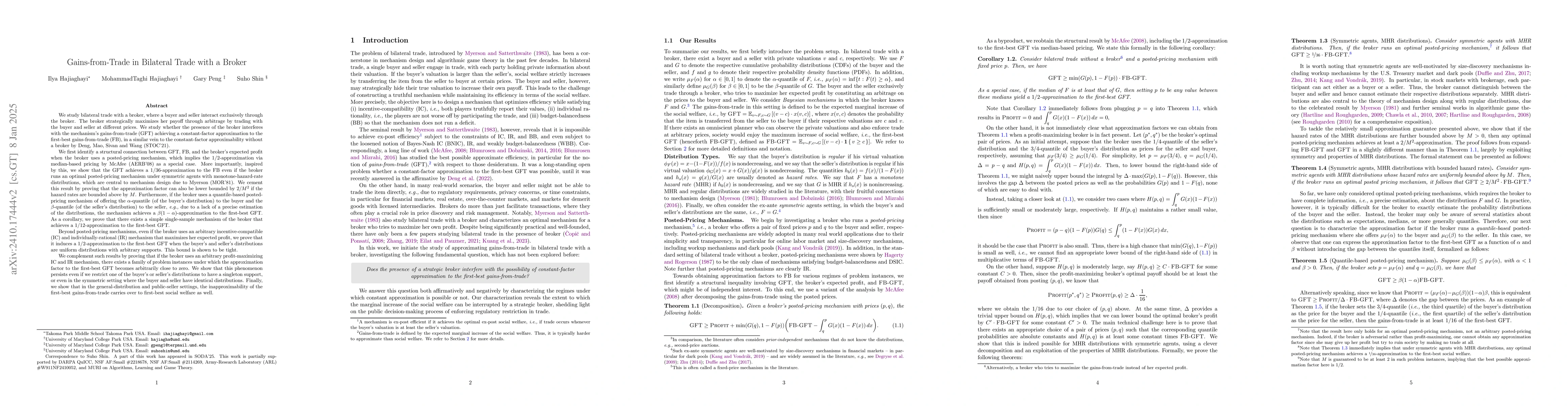 This research investigates bilateral trade with a broker who maximizes profit through arbitrage, examining the broker's impact on the gains-from-trade (GFT) relative to a first-best scenario. It finds that even optimal broker mechanisms achieve only a $1/36$ approximation to GFT under symmetric agents, and a $1/2$ approximation when distributions are uniform, with this bound proven tight. However, arbitrary mechanisms can significantly degrade GFT, even when distributions are restricted or symmetric.