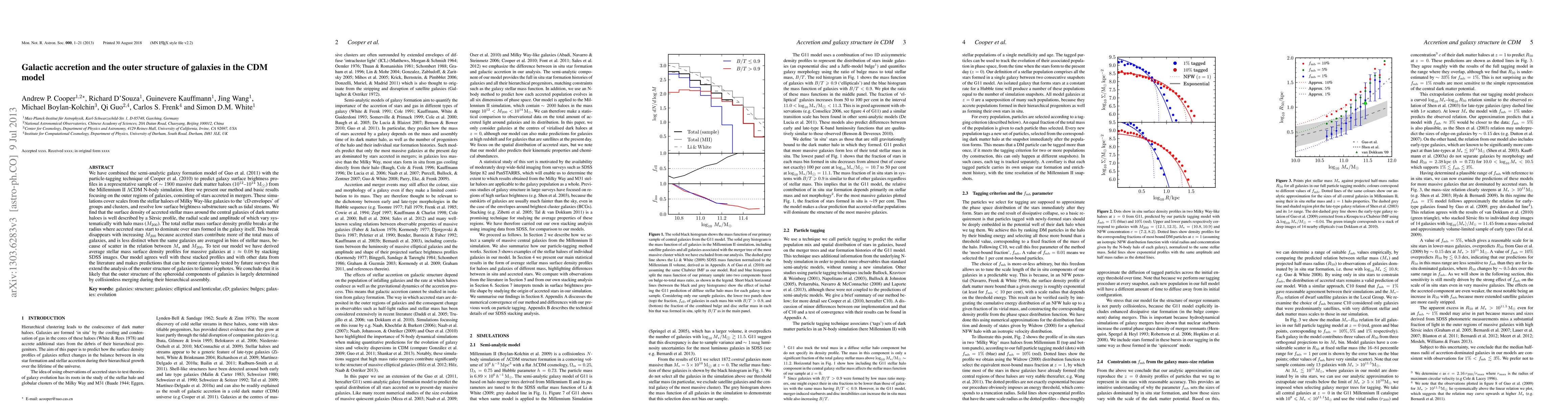 This paper combines a semi-analytic galaxy formation model with N-body simulations to study the surface brightness profiles of galaxies, focusing on the accreted stellar mass in their outer regions. The results suggest that the outer structure of galaxies is largely shaped by the merging of stars during their hierarchical assembly.