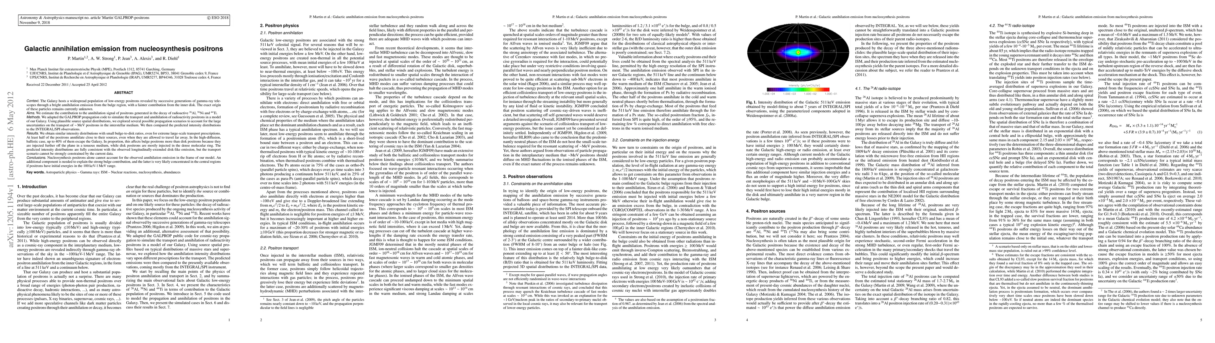 This paper investigates the origin of low-energy positrons in the Galaxy, attributing their annihilation emission to nucleosynthesis positrons from radioactive isotopes. The study finds that while nucleosynthesis positrons contribute significantly, they alone cannot fully explain the observed strong bulge emission, suggesting an additional, likely centrally concentrated, source is necessary.