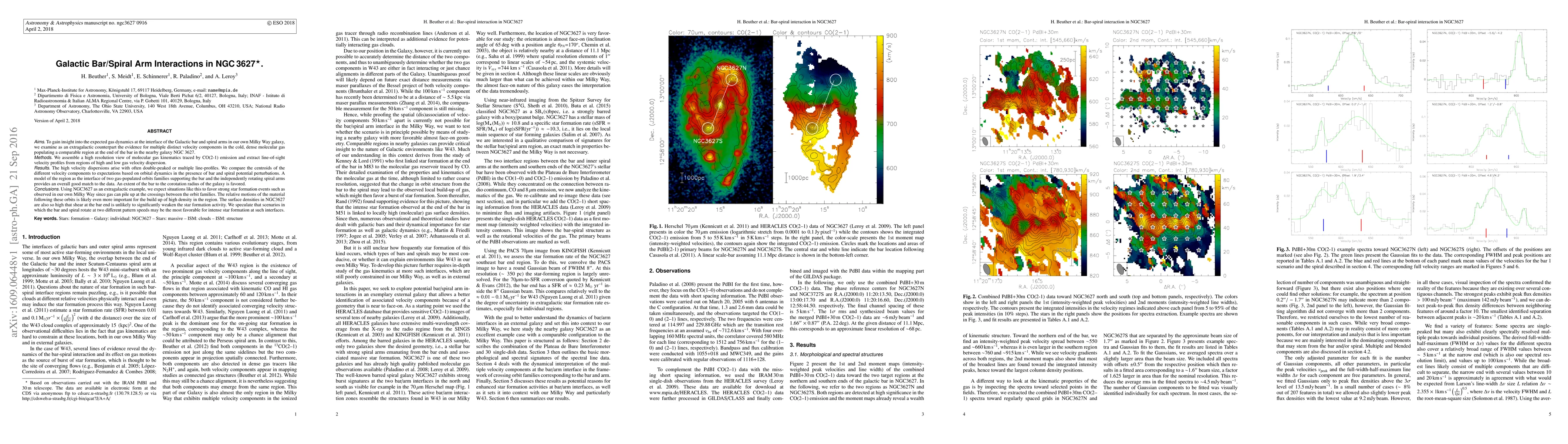 Researchers studied galaxy NGC3627 to understand gas dynamics at the interface of its bar and spiral arms, finding multiple velocity components that match predictions based on orbital dynamics, suggesting strong star formation potential.
