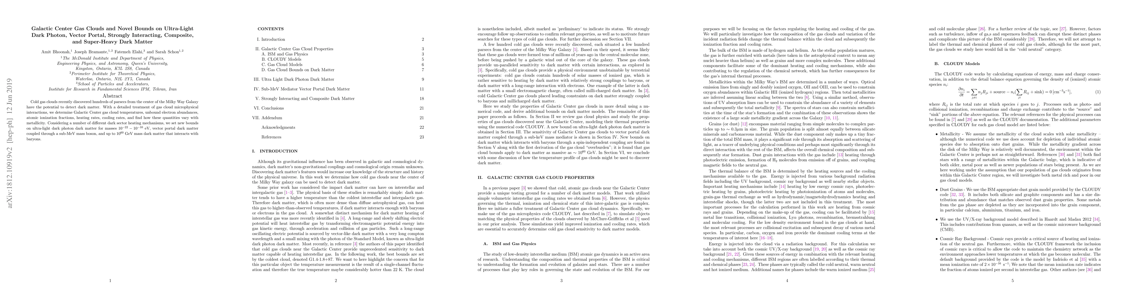 This paper investigates the potential of recently discovered cold gas clouds near the Milky Way's Galactic Center to detect dark matter. It sets new constraints on ultra-light dark photon, vector portal, and strongly interacting composite dark matter by analyzing microphysical interactions and variations in gas cloud properties with metallicity.