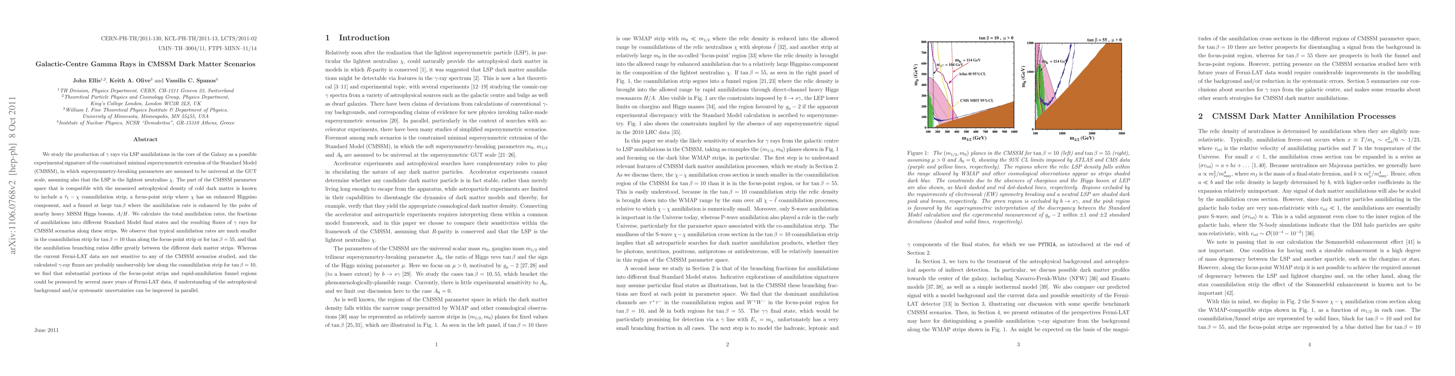 We study the production of gamma rays via LSP annihilations in the core of the Galaxy as a possible experimental signature of the constrained minimal supersymmetric extension of the Standard Model (CMSSM), in which supersymmetry-breaking parameters are assumed to be universal at the GUT scale, assuming also that the LSP is the lightest neutralino chi. The part of the CMSSM parameter space that is compatible with the measured astrophysical density of cold dark matter is known to include a stau_1 - chi coannihilation strip, a focus-point strip where chi has an enhanced Higgsino component, and a funnel at large tanb where the annihilation rate is enhanced by the poles of nearby heavy MSSM Higgs bosons, A/H. We calculate the total annihilation rates, the fractions of annihilations into different Standard Model final states and the resulting fluxes of gamma rays for CMSSM scenarios along these strips. We observe that typical annihilation rates are much smaller in the coannihilation strip for tanb = 10 than along the focus-point strip or for tanb = 55, and that the annihilation branching ratios differ greatly between the different dark matter strips. Whereas the current Fermi-LAT data are not sensitive to any of the CMSSM scenarios studied, and the calculated gamma-ray fluxes are probably unobservably low along the coannihilation strip for tanb = 10, we find that substantial portions of the focus-point strips and rapid-annihilation funnel regions could be pressured by several more years of Fermi-LAT data, if understanding of the astrophysical background and/or systematic uncertainties can be improved in parallel.