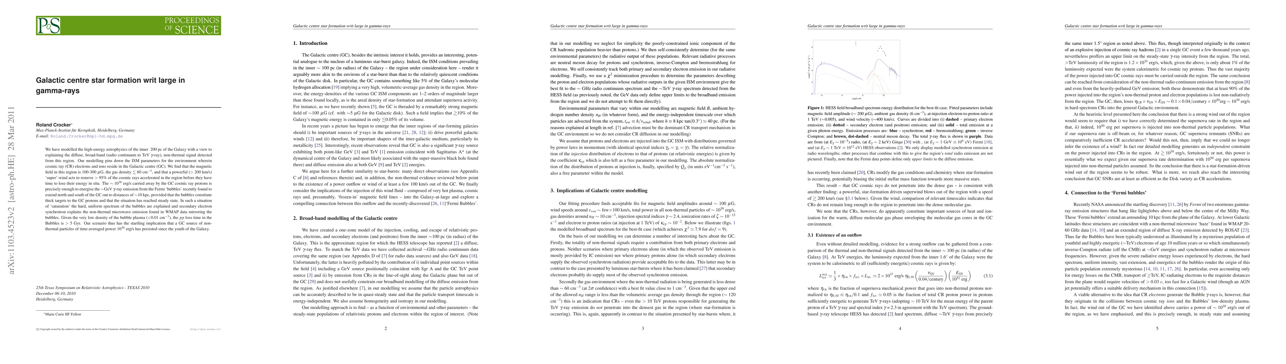 A new study models the Galactic centre's high-energy astrophysics, finding a powerful 'super'-wind that removes 95% of cosmic rays, which then energize gamma-ray emission from the Fermi bubbles, suggesting a persistent source of nonthermal particles since the Galaxy's youth.