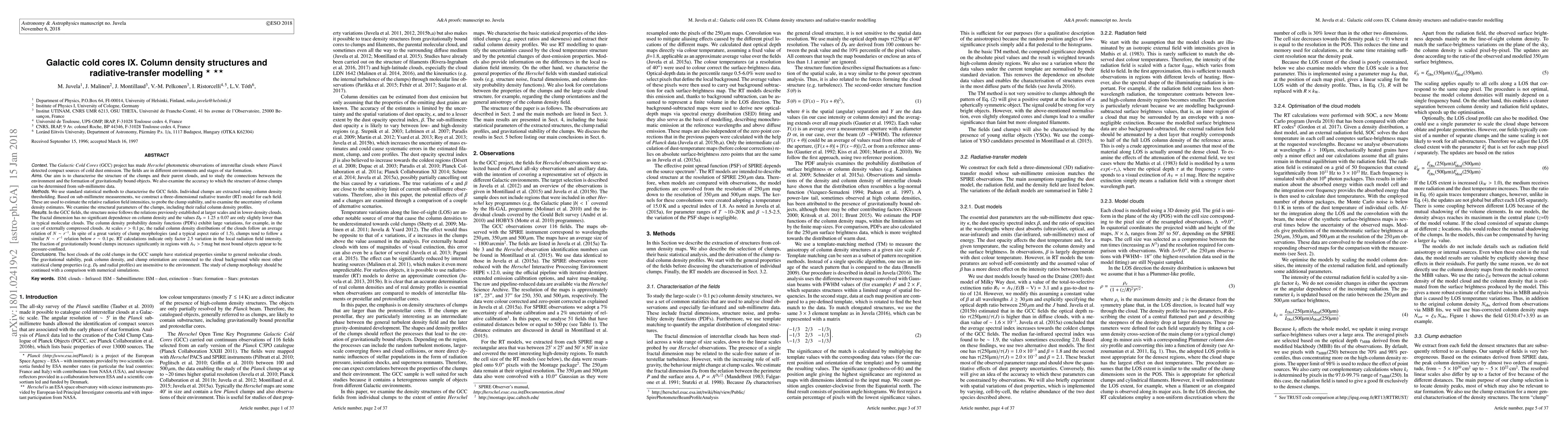 The Galactic Cold Cores project uses Herschel observations to characterize the structure of interstellar clouds and dense clumps, employing radiative transfer modelling to assess radiation field intensities and clump stability. The study finds that GCC fields exhibit fractal dimensions and radial column density profiles similar to typical molecular clouds, with most clumps following a N~r^{-1} relation at small scales.
