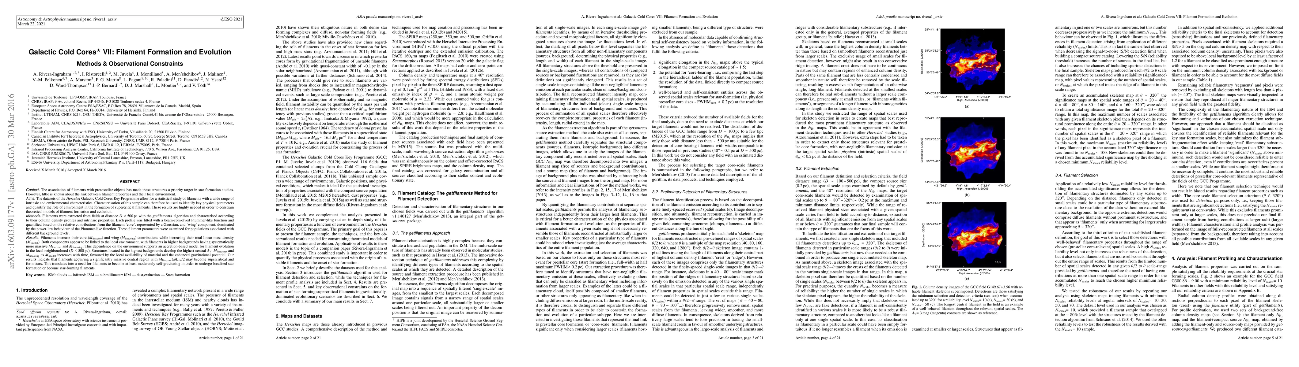 The study analyzes filament formation and evolution in the Galactic Cold Cores using Herschel Key Programme data. Employing the getfilaments algorithm, filaments were characterized via column density profiles and intrinsic properties, fitted with a beam-convolved Plummer-like function. Results indicate filament core and wing mass increase with total linear mass density, linked to local environment. Filaments in higher backgrounds have more massive cores and wings, supporting an accretion-based evolution model. Filaments with substantial central mass (Mcore>Mcrit/2) may become supercritical and form stars, emphasizing the need for filaments to be moderately self-gravitating for localized star formation.