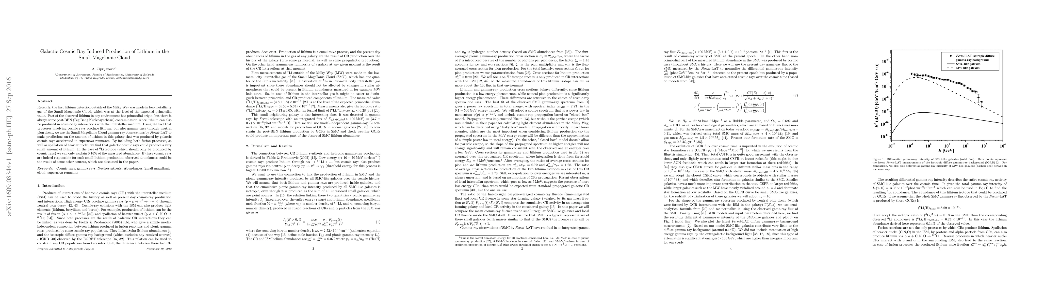 This paper investigates the production of lithium in the Small Magellanic Cloud via galactic cosmic rays, finding that cosmic rays contribute only a minor fraction (0.16%) to the observed 6Li isotope abundance, suggesting other sources may dominate lithium production.