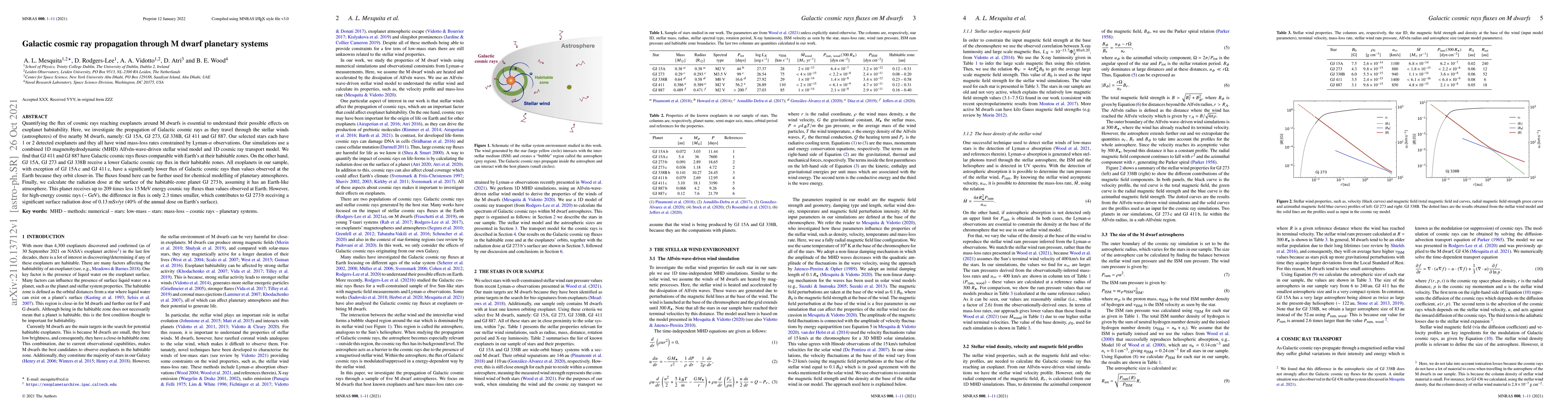This study investigates the propagation of Galactic cosmic rays through the stellar winds of five M dwarf stars, finding that GJ 411 and GJ 887 have cosmic ray fluxes comparable to Earth's in their habitable zones, while GJ 15A, GJ 273, and GJ 338B receive lower fluxes. GJ 273 b, despite receiving significantly less low-energy cosmic rays, still has a substantial surface radiation dose due to high-energy cosmic rays.