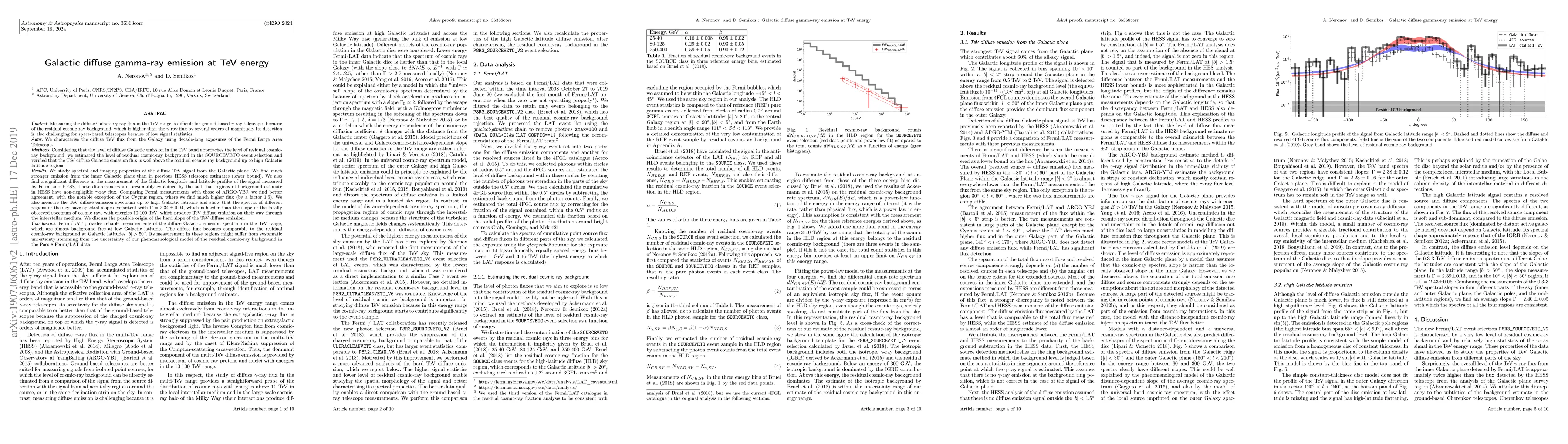 The Fermi Large Area Telescope provides reliable measurements of the diffuse Galactic gamma-ray emission in the TeV range, showing stronger emission from the inner Galactic plane and significant differences in longitude and latitude profiles compared to previous HESS estimates. The TeV diffuse emission spectrum across different sky regions is consistent with a hard slope of Gamma=2.34±0.04.