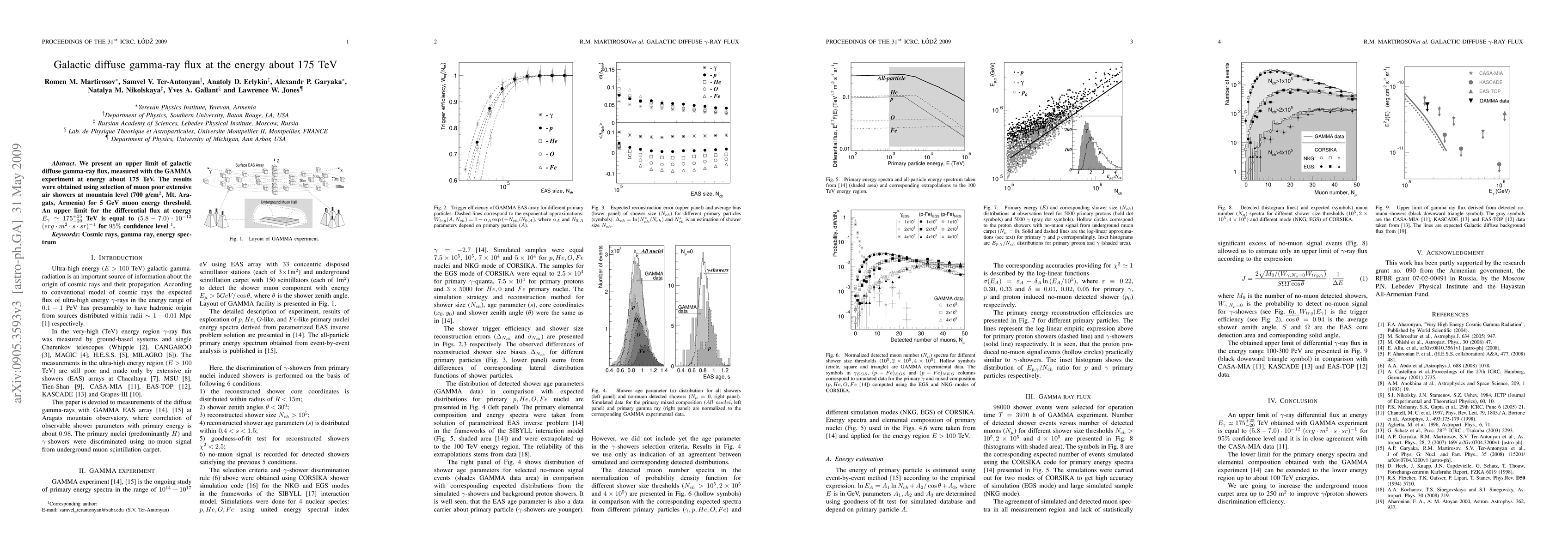 Researchers set an upper limit on galactic diffuse gamma-ray flux at 175 TeV using the GAMMA experiment, finding a flux of (5.8-7.0)x10^-12 [erg m^2 s sr]^-1.