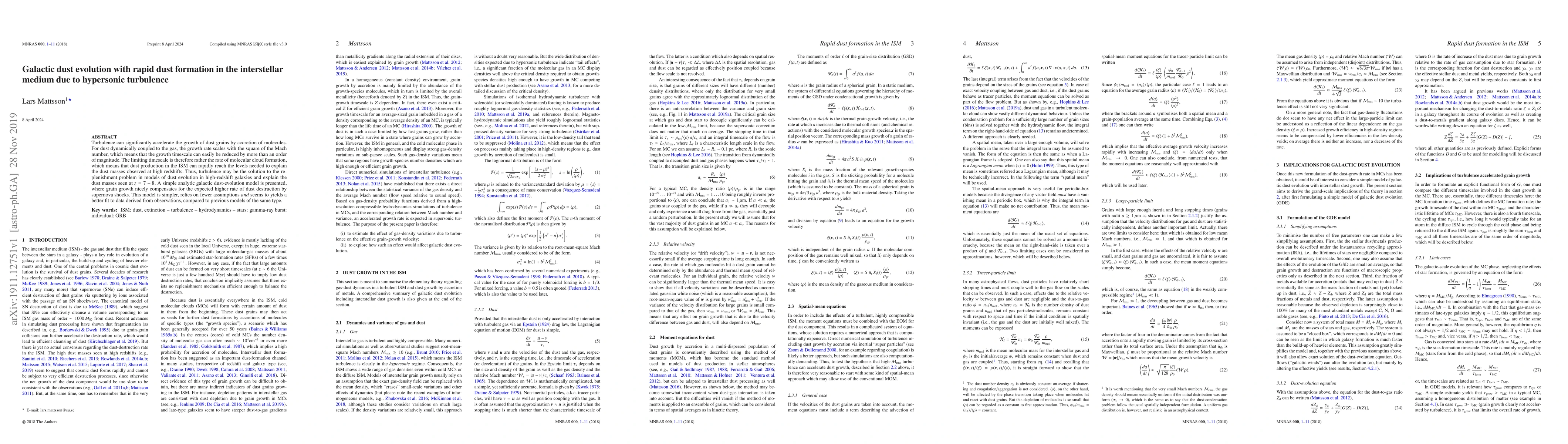 This paper explores how turbulence accelerates the rapid formation of dust grains in the interstellar medium, showing that dust growth can be significantly enhanced by hypersonic turbulence. A new analytic model presented here suggests that turbulence can quickly replenish dust masses needed to explain observations at high redshifts, providing a better fit to observational data than previous models.