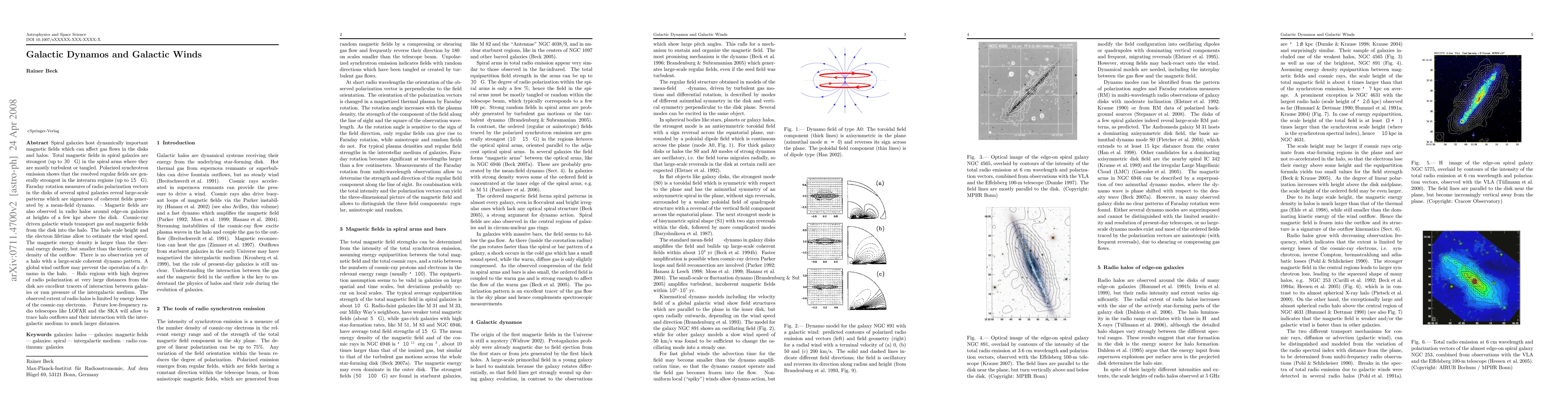This research explores the role of magnetic fields in spiral galaxies, revealing strongest fields in interarm regions generated by dynamo processes. Galactic winds transport these magnetic fields from disks into halos, with future telescopes like LOFAR and SKA expected to trace these outflows and their interactions with the intergalactic medium.