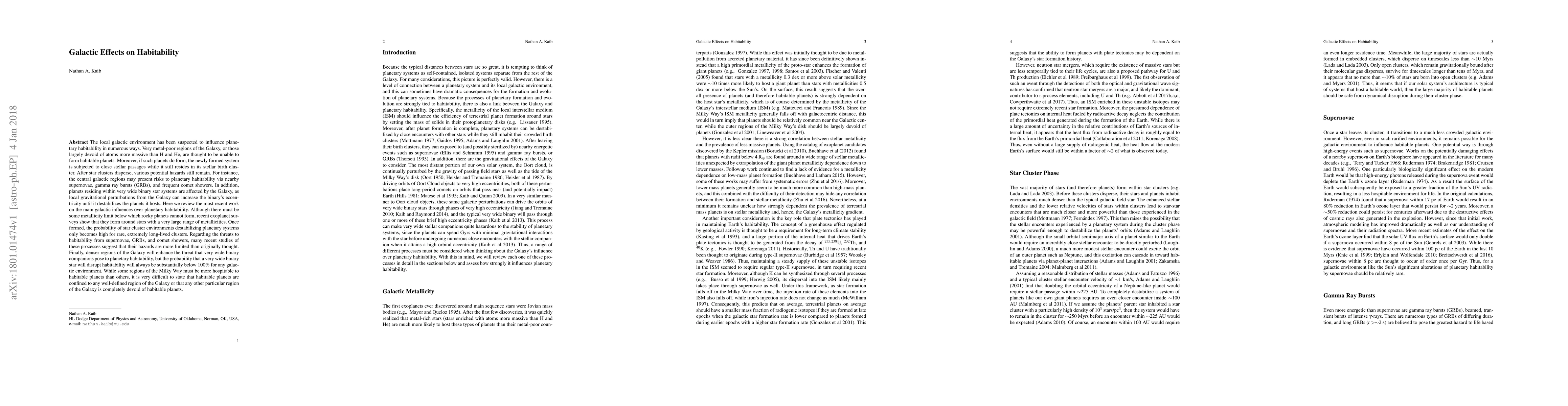 This paper reviews galactic influences on planetary habitability, finding that while metal-poor regions may struggle to form habitable planets, recent surveys show rocky planets form across a wide range of metallicities. It concludes that while some galactic regions pose greater threats from supernovae, gamma ray bursts, and binary star systems, no region is entirely uninhabitable.