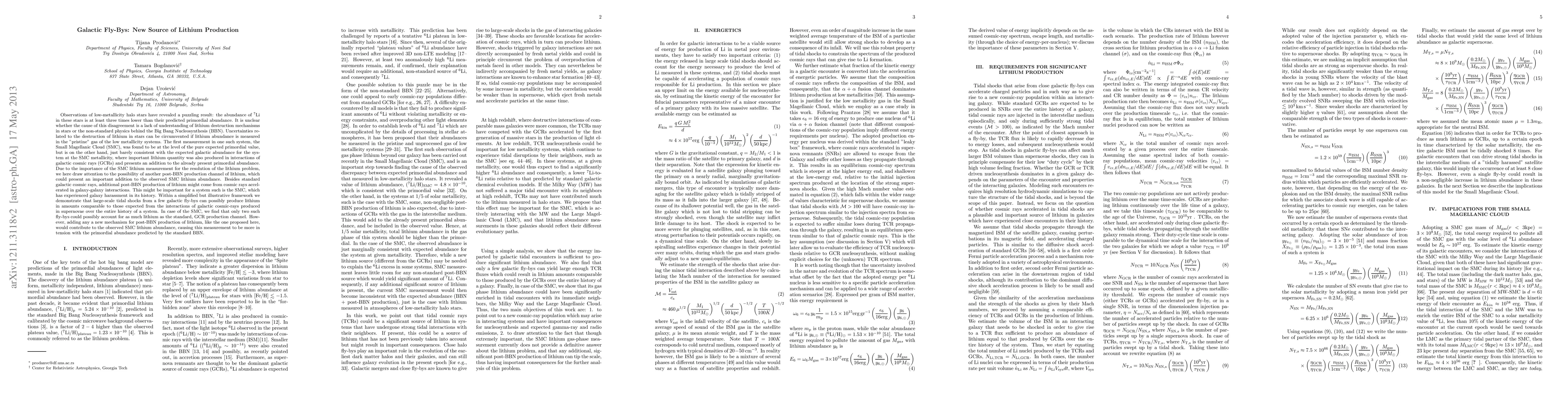 The paper explores the discrepancy in lithium abundance in low-metallicity halo stars, suggesting a new source of lithium production via galactic fly-bys and cosmic ray interactions in galaxies like the SMC. This offers an alternative to traditional lithium production mechanisms, potentially resolving the lithium abundance problem.