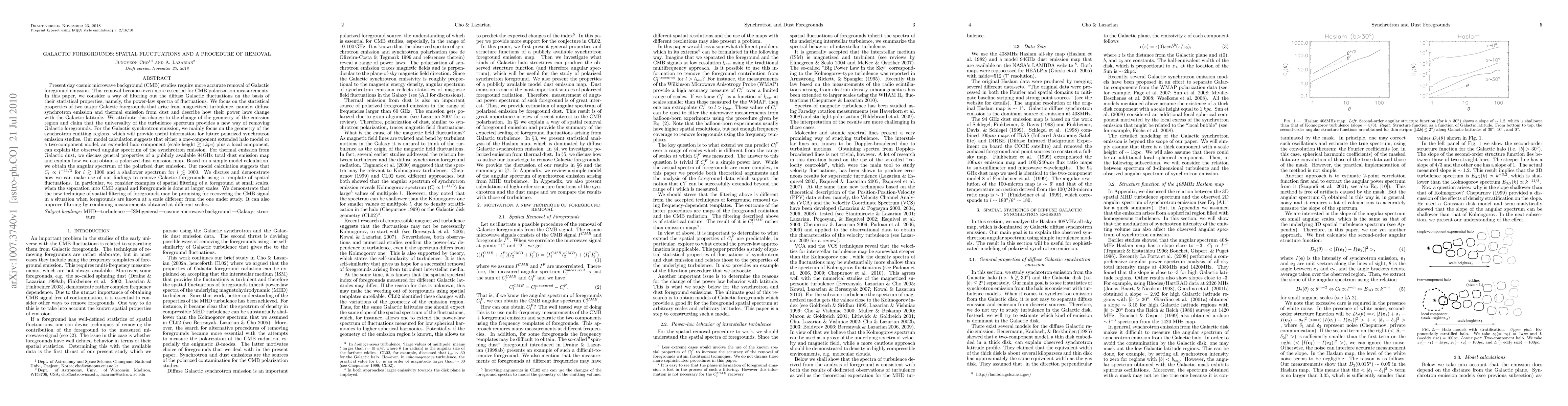 This paper proposes a novel method for removing Galactic foregrounds from cosmic microwave background (CMB) studies by analyzing the statistical properties of diffuse Galactic fluctuations, specifically their power-law spectra. The technique leverages the universality of turbulence spectra to filter out foregrounds based on their spatial fluctuations, demonstrating improved CMB signal recovery.