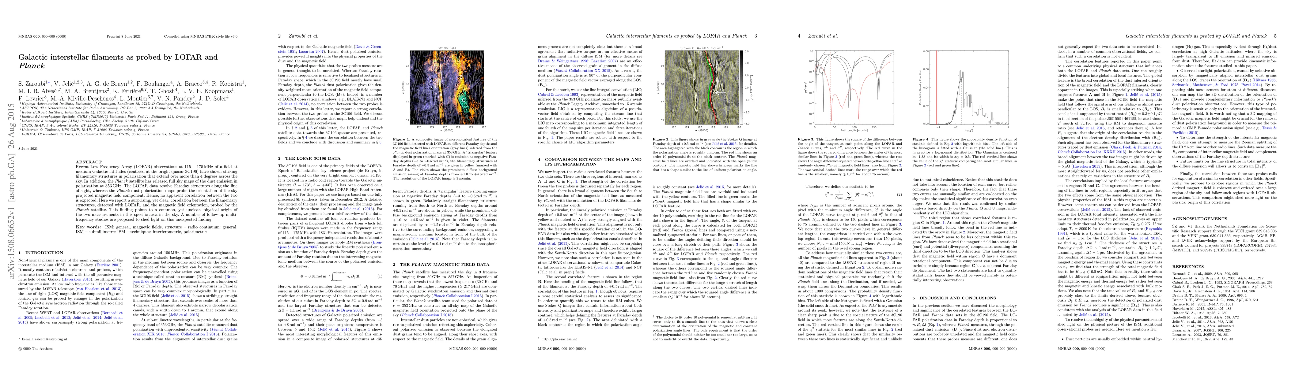 This paper reports a surprising correlation between filamentary structures observed in LOFAR's low-frequency polarization data and the magnetic field orientation from Planck's dust polarization maps, suggesting a common physical origin in a specific region of the sky. Further multi-frequency studies are proposed to investigate this unexpected finding.