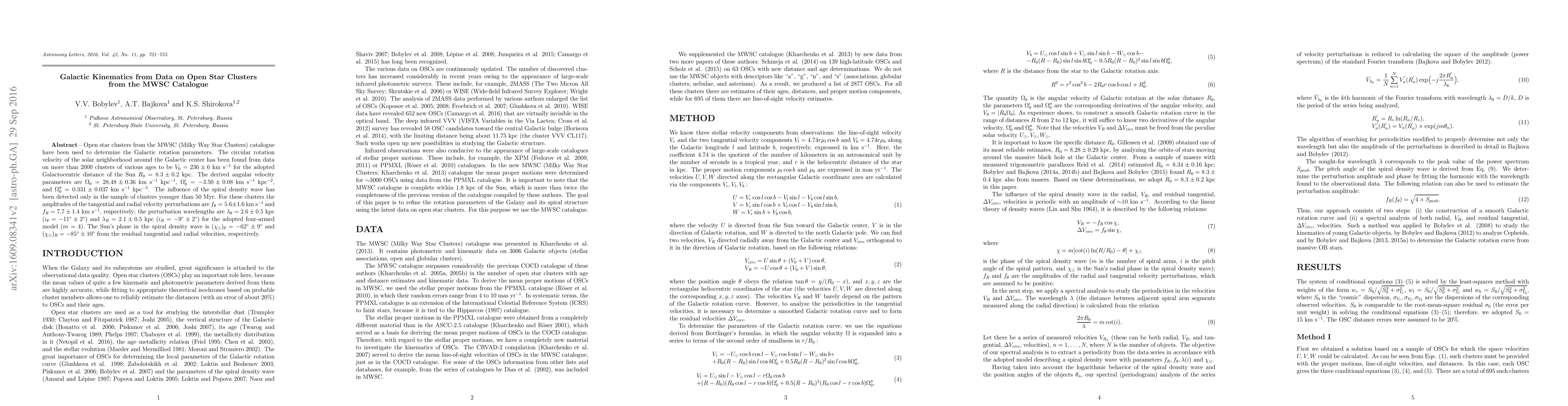This study uses data from the MWSC catalogue to determine Galactic rotation parameters for over 2000 open star clusters, finding a circular rotation velocity of V_0=236±6 km s^{-1} at R_0=8.3±0.2 kpc. The influence of spiral density waves is detected in younger clusters, with specific velocity perturbations and wavelengths.