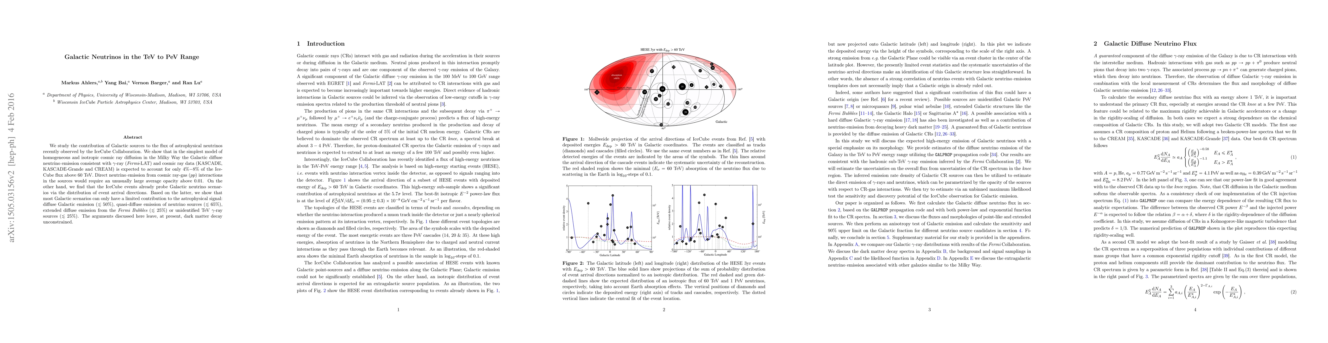 We study the contribution of Galactic sources to the flux of astrophysical neutrinos recently observed by the IceCube Collaboration. We show that in the simplest model of homogeneous and isotropic cosmic ray diffusion in the Milky Way the Galactic diffuse neutrino emission consistent with $\gamma$-ray (Fermi-LAT) and cosmic ray data (KASCADE, KASCADE-Grande and CREAM) is expected to account for only $4\%-8\%$ of the IceCube flux above 60 TeV. Direct neutrino emission from cosmic ray-gas ($pp$) interactions in the sources would require an unusually large average opacity above 0.01. On the other hand, we find that the IceCube events already probe Galactic neutrino scenarios via the distribution of event arrival directions. Based on the latter, we show that most Galactic scenarios can only have a limited contribution to the astrophysical signal: diffuse Galactic emission ($\lesssim50\%$), quasi-diffuse emission of neutrino sources ($\lesssim65\%$), extended diffuse emission from the Fermi Bubbles ($\lesssim25\%$) or unidentified TeV $\gamma$-ray sources ($\lesssim25\%$). The arguments discussed here leave, at present, dark matter decay unconstrained.