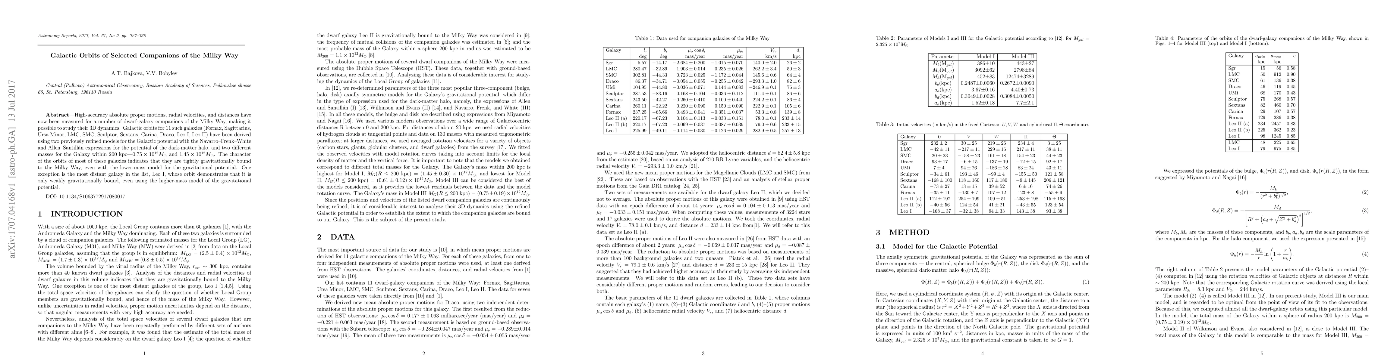 High-accuracy absolute proper motions, radial velocities, and distances have now been measured for a number of dwarf-galaxy companions of the Milky Way, making it possible to study their 3D dynamics. Galactic orbits for 11 such galaxies (Fornax, Sagittarius, Ursa Minor, LMC, SMC, Sculptor, Sextans, Carina, Draco, Leo I, Leo II) have been derived using two previously refined models for the Galactic potential with the Navarro-Frenk-White and Allen-Santill'an expressions for the potential of the dark-matter halo, and two different masses for the Galaxy within 200 kpc - 0.75x10^12 Mo and 1.45x10^12 Mo. The character of the orbits of most of these galaxies indicates that they are tightly gravitationally bound to the Milky Way, even with the lower-mass model for the gravitational potential. One exception is the most distant galaxy in the list, Leo I, whose orbit demonstrates that it is only weakly gravitationally bound, even using the higher-mass model of the gravitational potential.