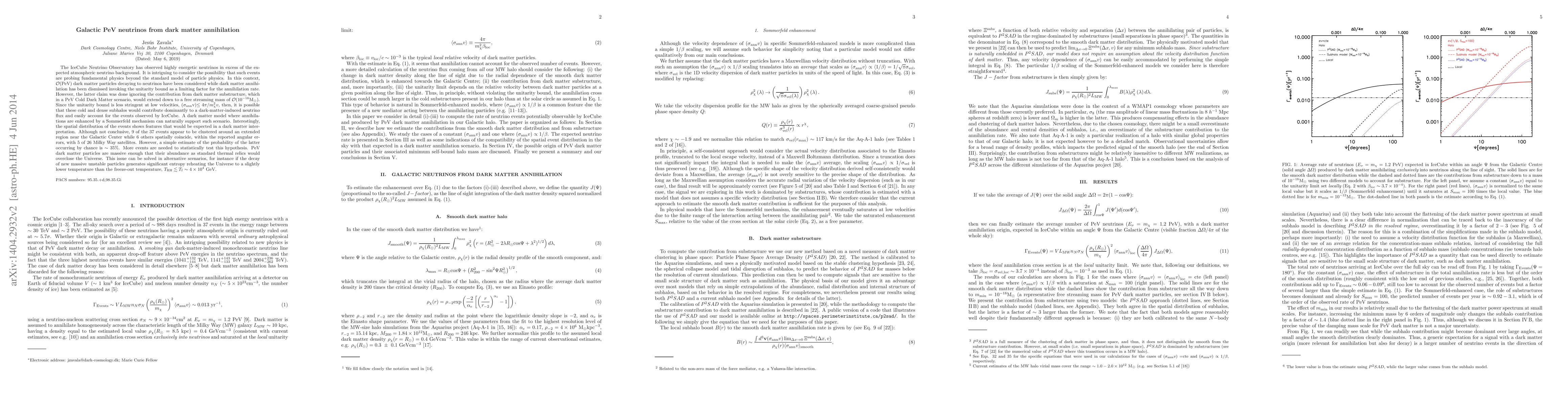 This paper explores the possibility that highly energetic neutrinos observed by the IceCube Neutrino Observatory are from the annihilation of $\mathcal{O}$(PeV) dark matter particles in subhalos, challenging previous dismissals based on unitarity bounds. The spatial clustering of some events near the Galactic Center and Milky Way satellites hints at a dark matter origin, though more data is needed for statistical confirmation.