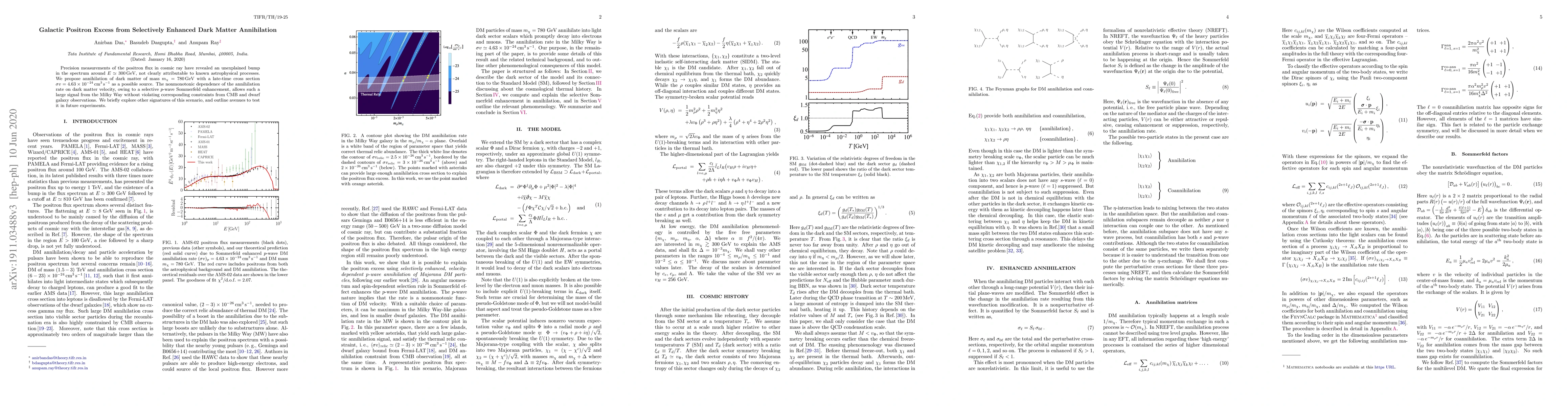 Precision measurements of the positron flux in cosmic ray have revealed an unexplained bump in the spectrum around $E\simeq 300\,\mathrm{GeV}$, not clearly attributable to known astrophysical processes. We propose annihilation of dark matter of mass $m_\chi = 780\,\mathrm{GeV}$ with a late-time cross section $\sigma v = 4.63\times 10^{-24}\,\mathrm{cm^3\,s^{-1}}$ as a possible source. The nonmonotonic dependence of the annihilation rate on dark matter velocity, owing to a selective $p$-wave Sommerfeld enhancement, allows such a large signal from the Milky Way without violating corresponding constraints from CMB and dwarf galaxy observations. We briefly explore other signatures of this scenario, and outline avenues to test it in future experiments.
