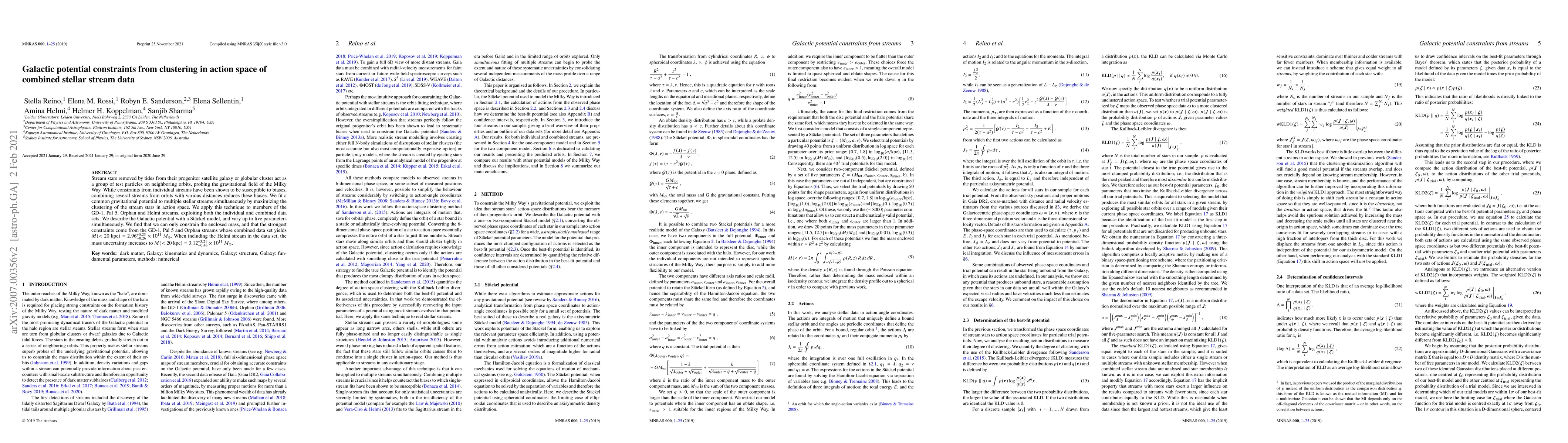 Stream stars removed by tides from their progenitor satellite galaxy or globular cluster act as a group of test particles on neighboring orbits, probing the gravitational field of the Milky Way. While constraints from individual streams have been shown to be susceptible to biases, combining several streams from orbits with various distances reduces these biases. We fit a common gravitational potential to multiple stellar streams simultaneously by maximizing the clustering of the stream stars in action space. We apply this technique to members of the GD-1, Pal 5, Orphan and Helmi streams, exploiting both the individual and combined data sets. We describe the Galactic potential with a St\"ackel model, and vary up to five parameters simultaneously. We find that we can only constrain the enclosed mass, and that the strongest constraints come from the GD-1, Pal 5 and Orphan streams whose combined data set yields $M(< 20\ \mathrm{kpc}) = 2.96^{+0.25}_{-0.26} \times 10^{11} \ M_{\odot}$. When including the Helmi stream in the data set, the mass uncertainty increases to $M(< 20\ \mathrm{kpc}) = 3.12^{+3.21}_{-0.46} \times 10^{11} \ M_{\odot}$.