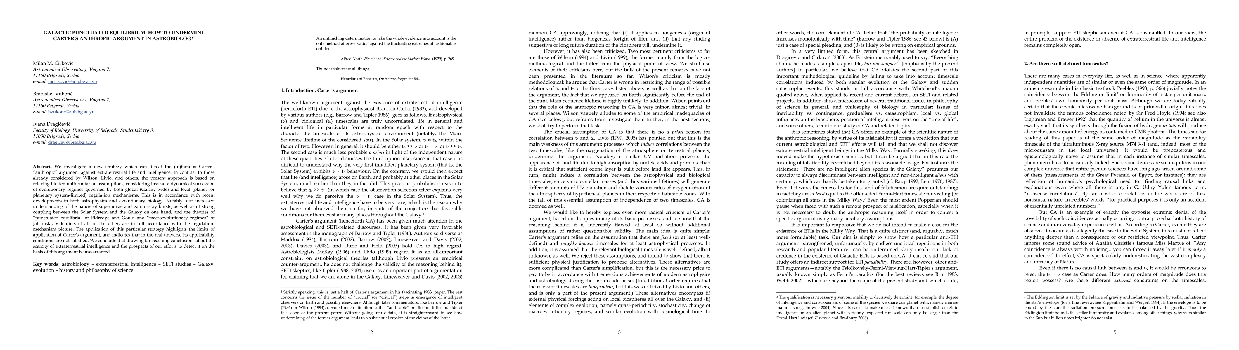 This paper proposes a new strategy to counter Carter's anthropic argument against extraterrestrial life, based on a dynamical succession of evolutionary regimes governed by global and local regulation mechanisms. It argues that recent astrophysical and evolutionary biological developments undermine Carter's argument, suggesting its conclusions about the scarcity of extraterrestrial intelligence are not valid.