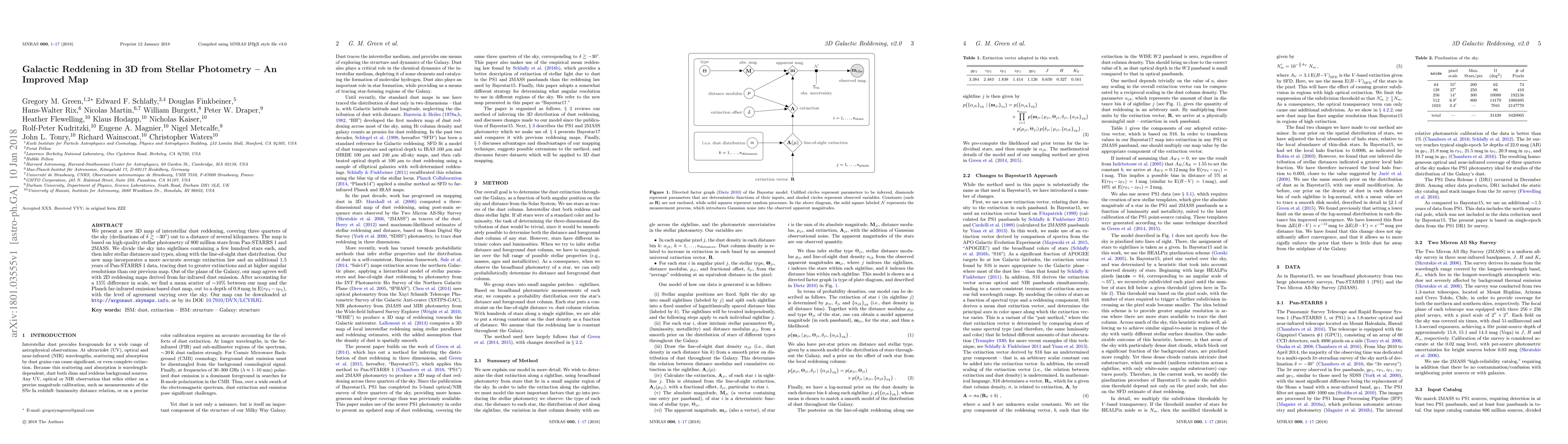 This paper presents a refined 3D map of interstellar dust reddening, utilizing stellar photometry from Pan-STARRS 1 and 2MASS to cover three-quarters of the sky. The new map improves upon previous versions with higher resolution and greater depth, showing good agreement with 2D maps derived from far-infrared dust emission.
