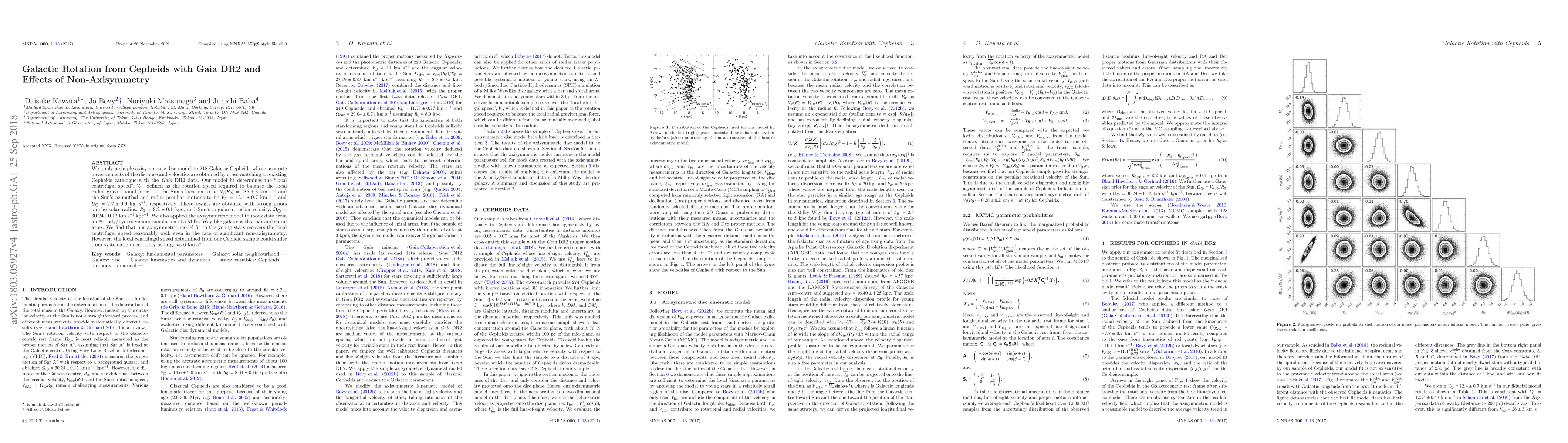 This study uses Gaia DR2 data to analyze 218 Cepheids, determining the local centrifugal speed at the Sun's location to be $236\pm 3$ km s$^{-1}$ and the Sun's peculiar motions. The axisymmetric model also fits non-axisymmetric mock data well, though it suggests a potential systematic uncertainty of up to 6 km s$^{-1}$ in the local centrifugal speed.