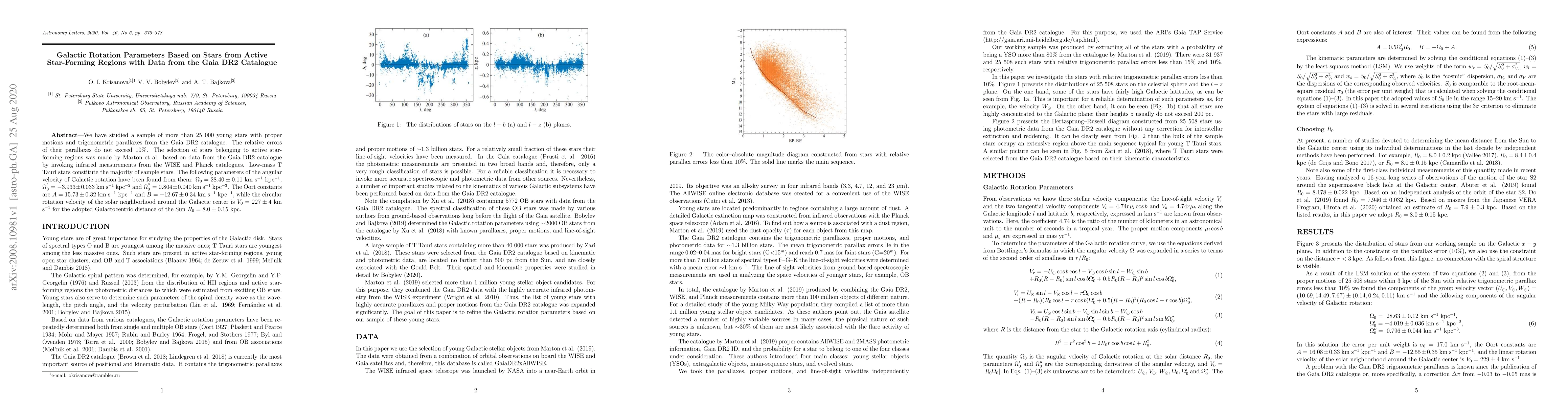We have studied a sample of more than 25 000 young stars with proper motions and trigonometric parallaxes from the Gaia DR2 catalogue. The relative errors of their parallaxes do not exceed 10\%. The selection of stars belonging to active star-forming regions was made by Marton et al. based on data from the Gaia DR2 catalogue by invoking infrared measurements from the WISE and Planck catalogues. Low-mass T Tauri stars constitute the majority of sample stars. The following parameters of the angular velocity of Galactic rotation have been found from them: $\Omega_0 =28.40\pm0.11$ km s$^{-1}$ kpc$^{-1}$, $\Omega^{'}_0=-3.933\pm0.033$ km s$^{-1}$ kpc$^{-2}$ and $\Omega^{''}_0=0.804\pm0.040$ km s$^{-1}$ kpc$^{-3}$. The Oort constants are $A=15.73\pm0.32$ km s$^{-1}$ kpc$^{-1}$ and $B=-12.67\pm0.34$ km s$^{-1}$ kpc$^{-1}$, while the circular rotation velocity of the solar neighborhood around the Galactic center is $V_0=227\pm4$ km s$^{-1}$ for the adopted Galactocentric distance of the Sun $R_0=8.0\pm0.15$ kpc.