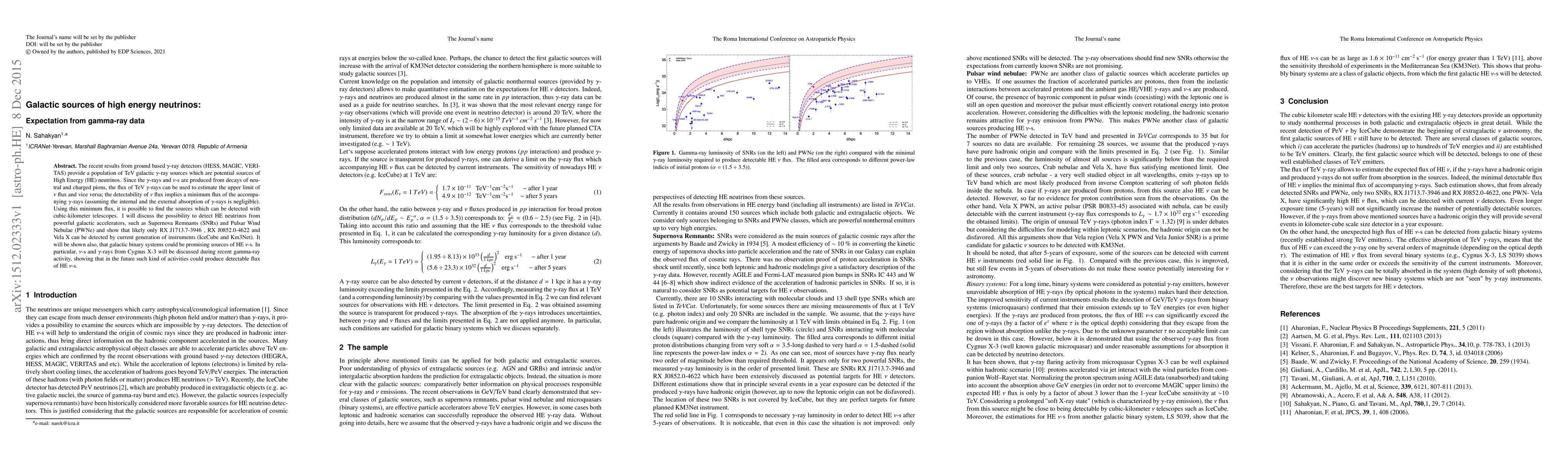 The paper presents a method to estimate high-energy neutrino fluxes using gamma-ray data, providing a guideline for neutrino searches from galactic sources.